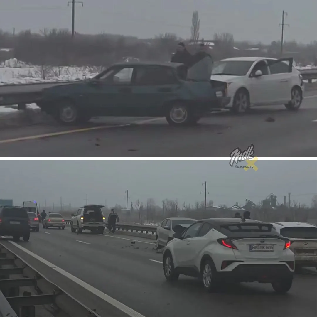 Из-за гололёда в Краснодаре произошло около 130 ДТП, в одной из аварий столкнулись 10 машин