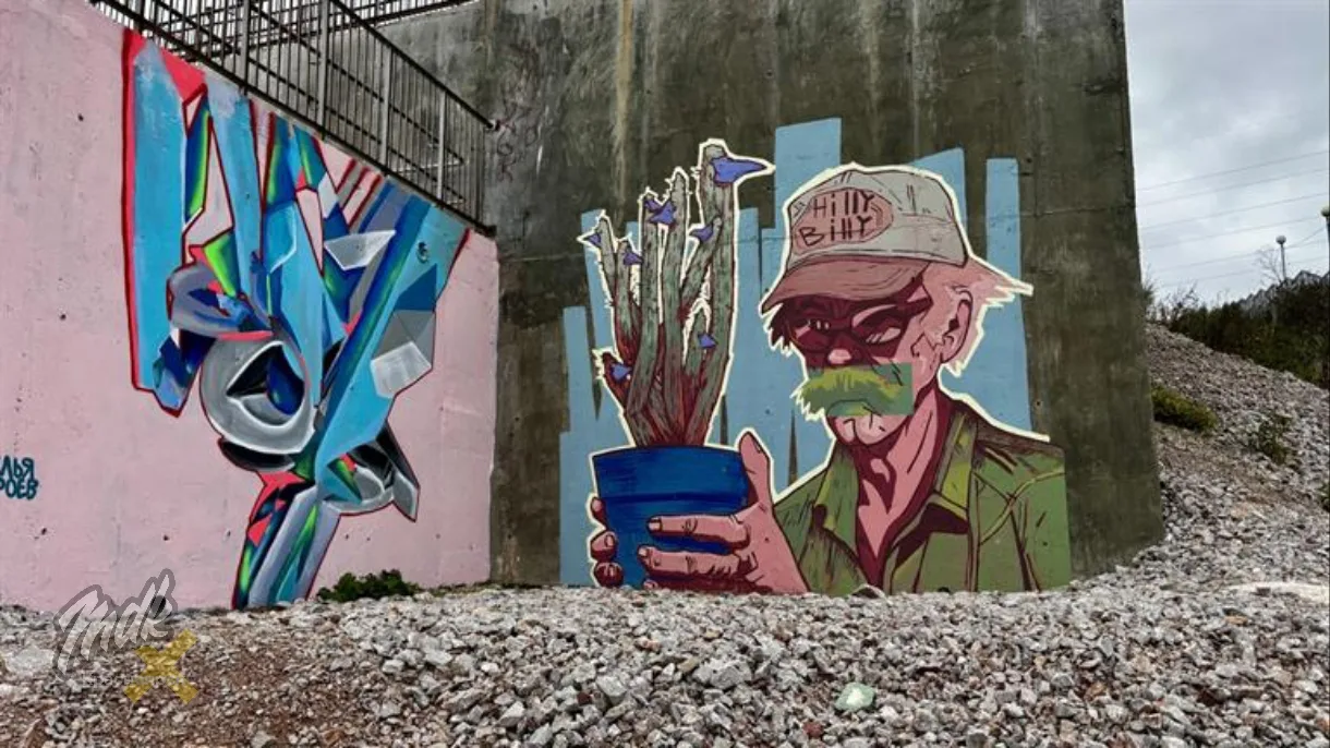 Подпорные стенки на улице Алёши Тимошенкова, 74а превратились в настоящие арт-объекты.