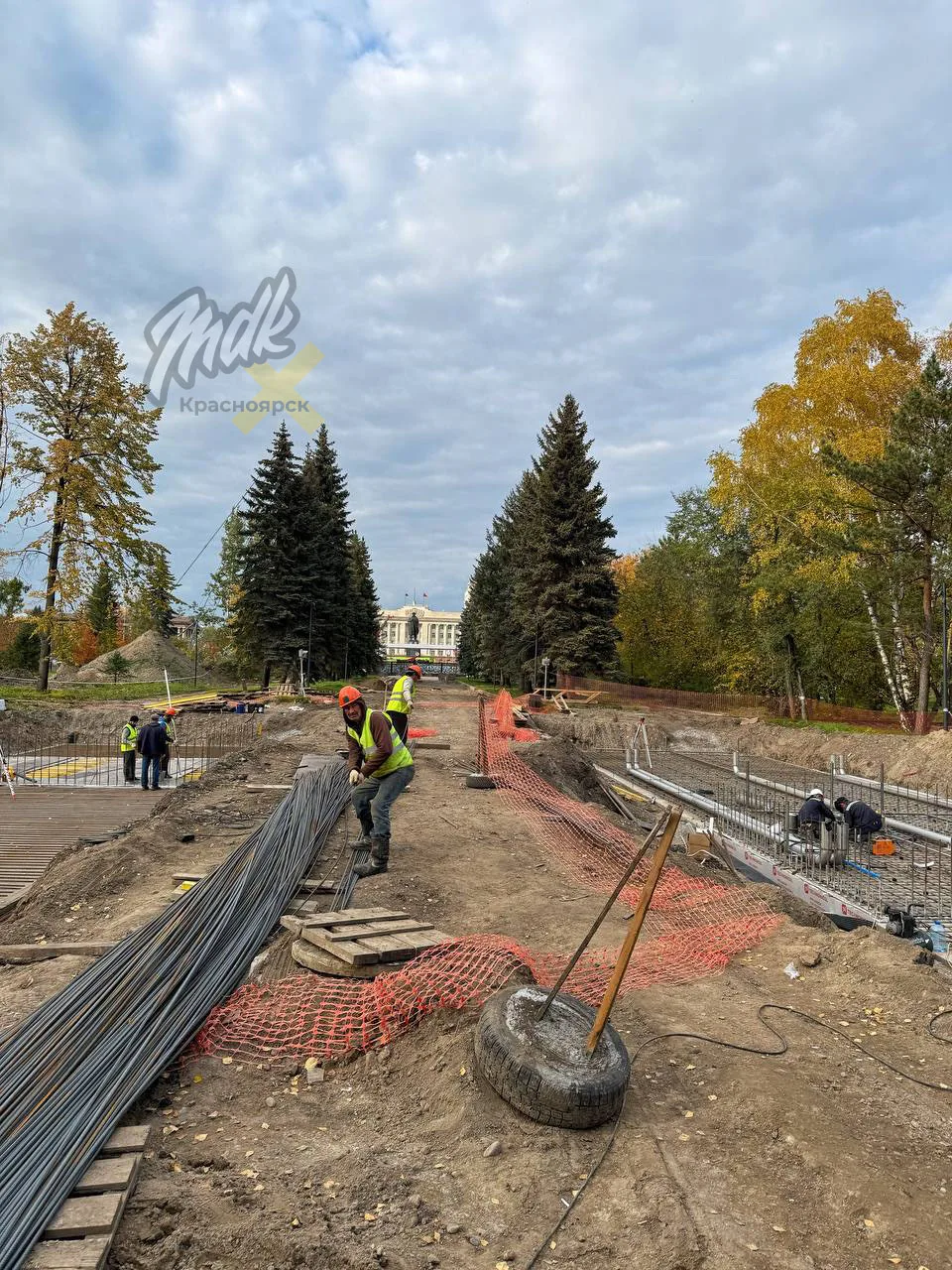 Работа над парком всё ещё кипит. Сейчас делают пешеходный фонтан на центральной аллее площадью 700 кв. метров.