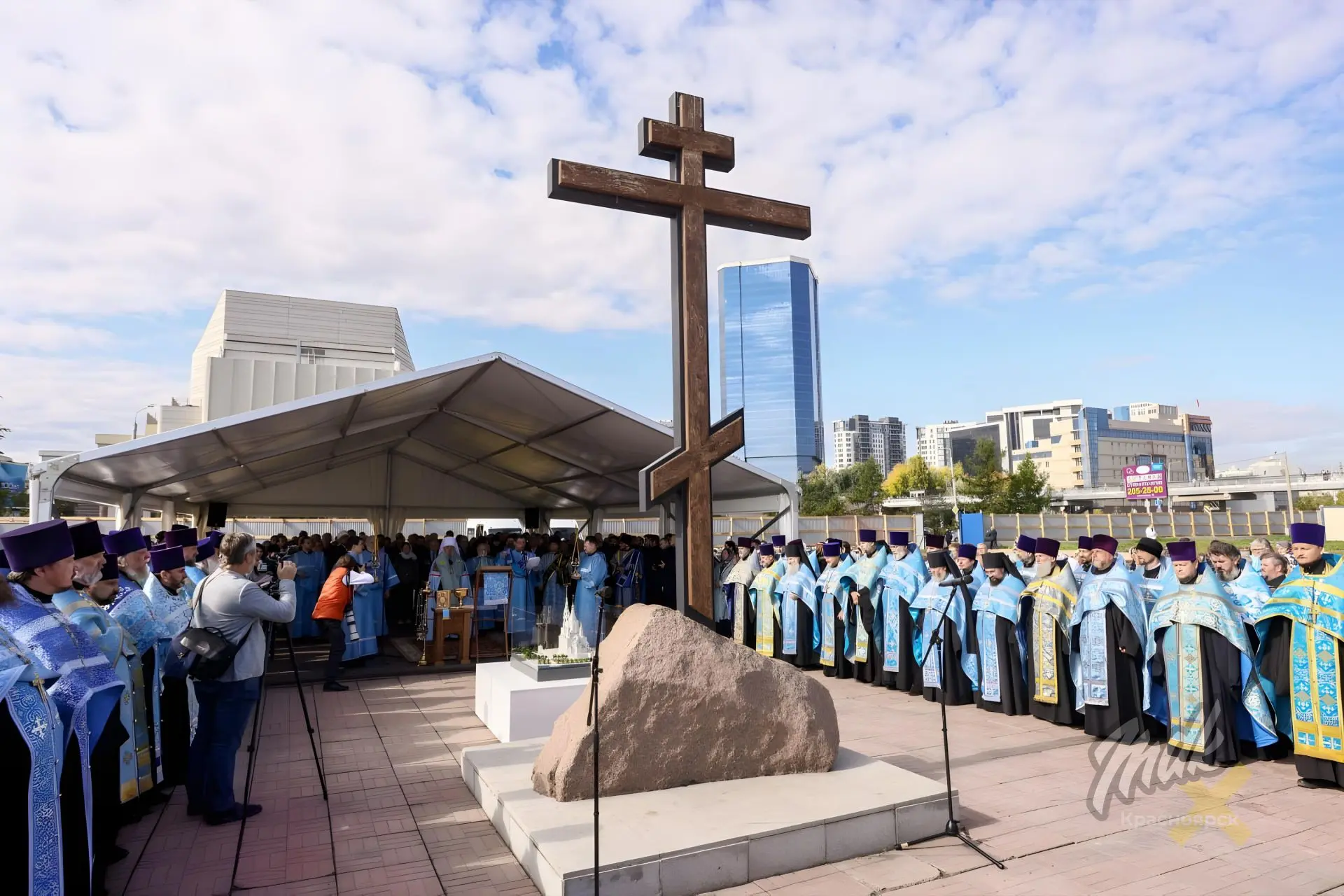 Сегодня в Красноярске официально стартовало строительство главного кафедрального собора. На Стрелке заложили краеугольный камень.