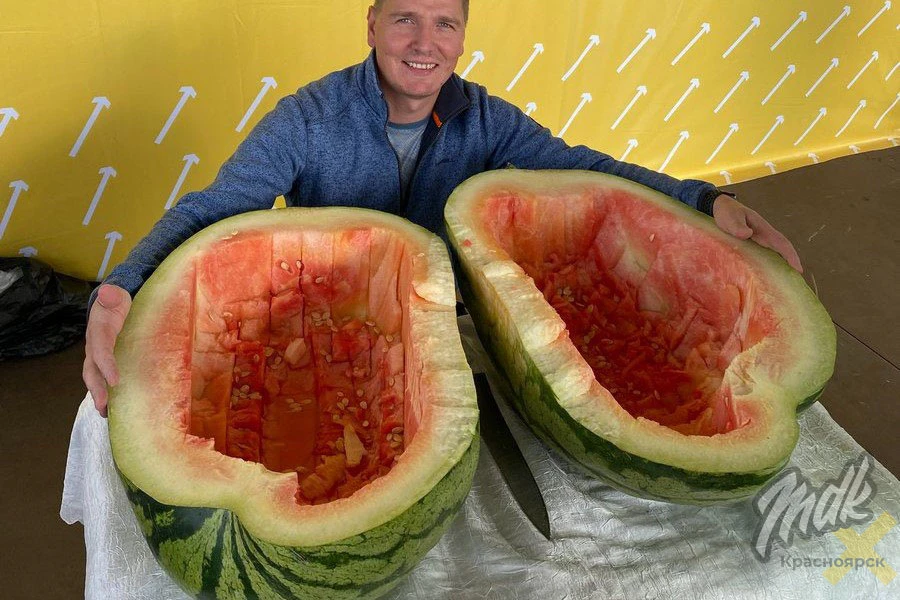 🍉 В Лесосибирске местный житель вырастил аруз весом 64,6 кг