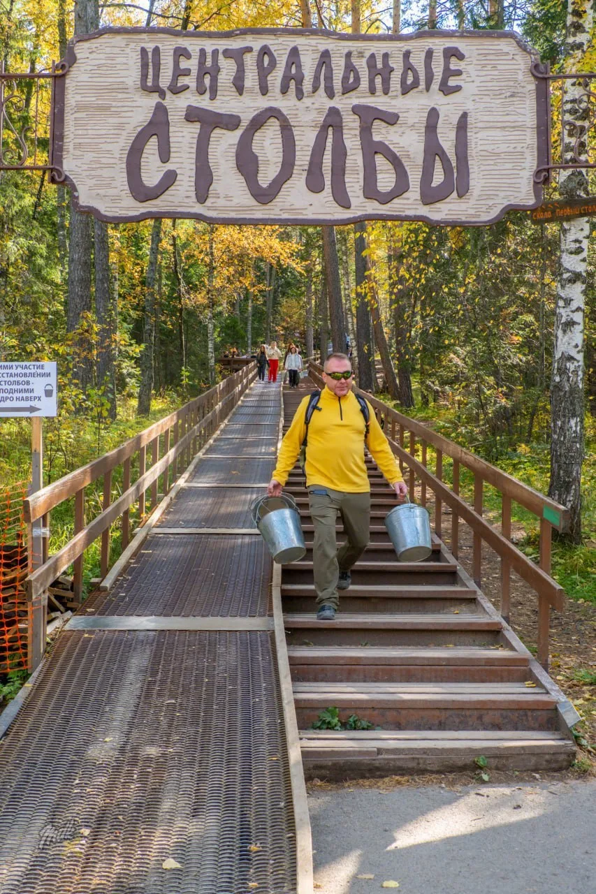 На «Столбах» придумали лайфхак для сохранения тропинок. Поток туристов растёт, земля размывается, оголяются корни.
