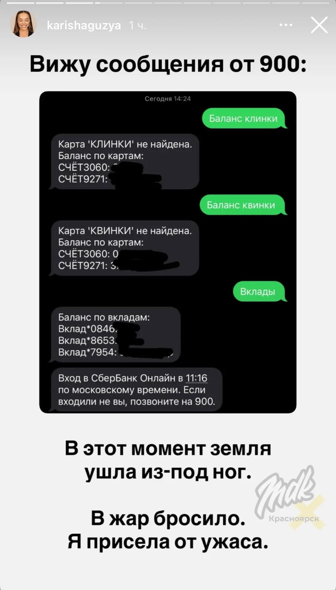 К счастью для блогерши, деньги снять не успели, и она оперативно обратилась в банк, заблокировав счёт.