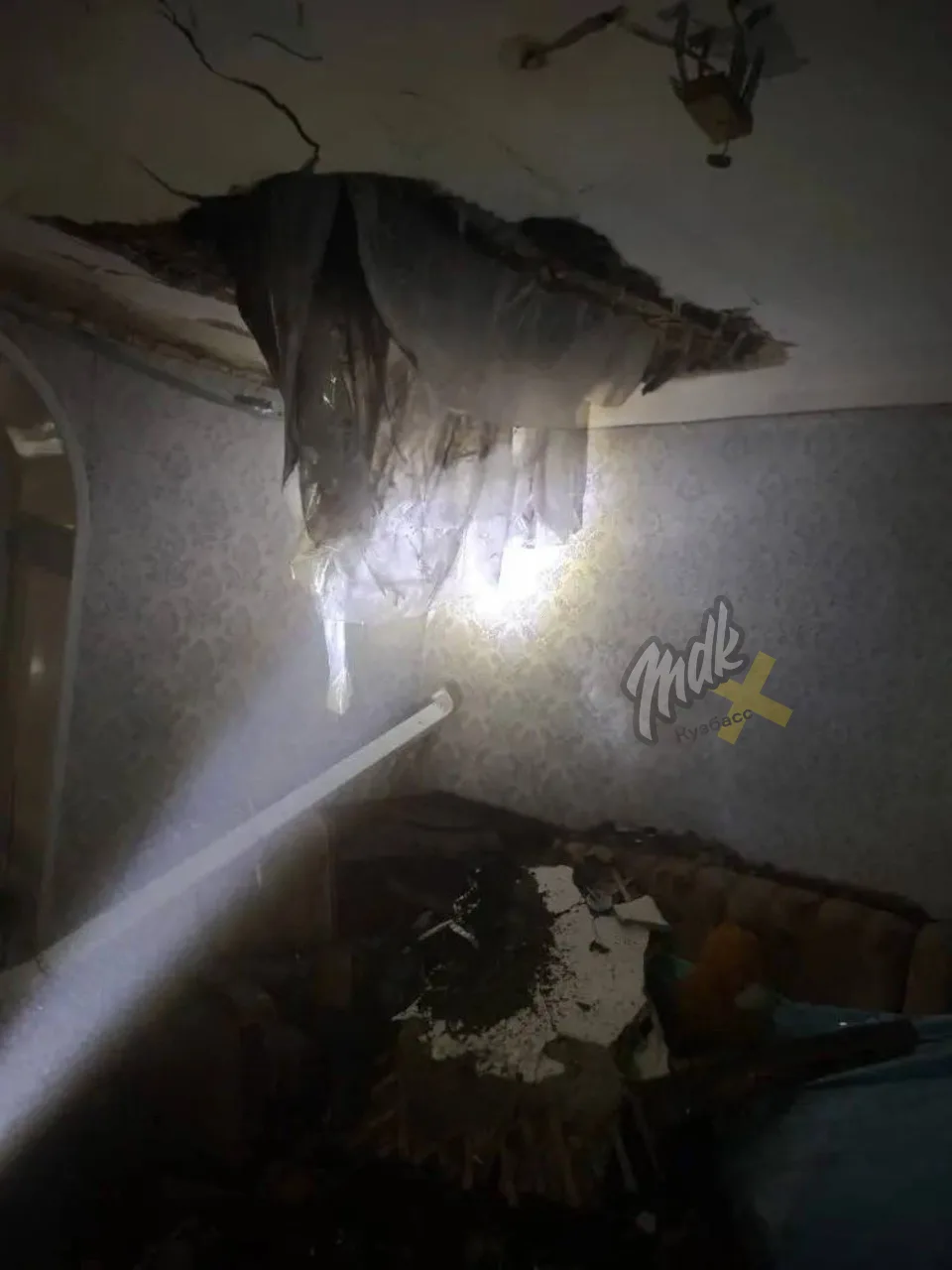 Жители микрорайона Абашево поделились фотками, как у них обрушился потолок прямо в хате, во втором доме по улице Тузовского. Майнкрафт начался из-за старости. Всё настолько плохо, что через дыры можно просто общаться с соседями сверху.
