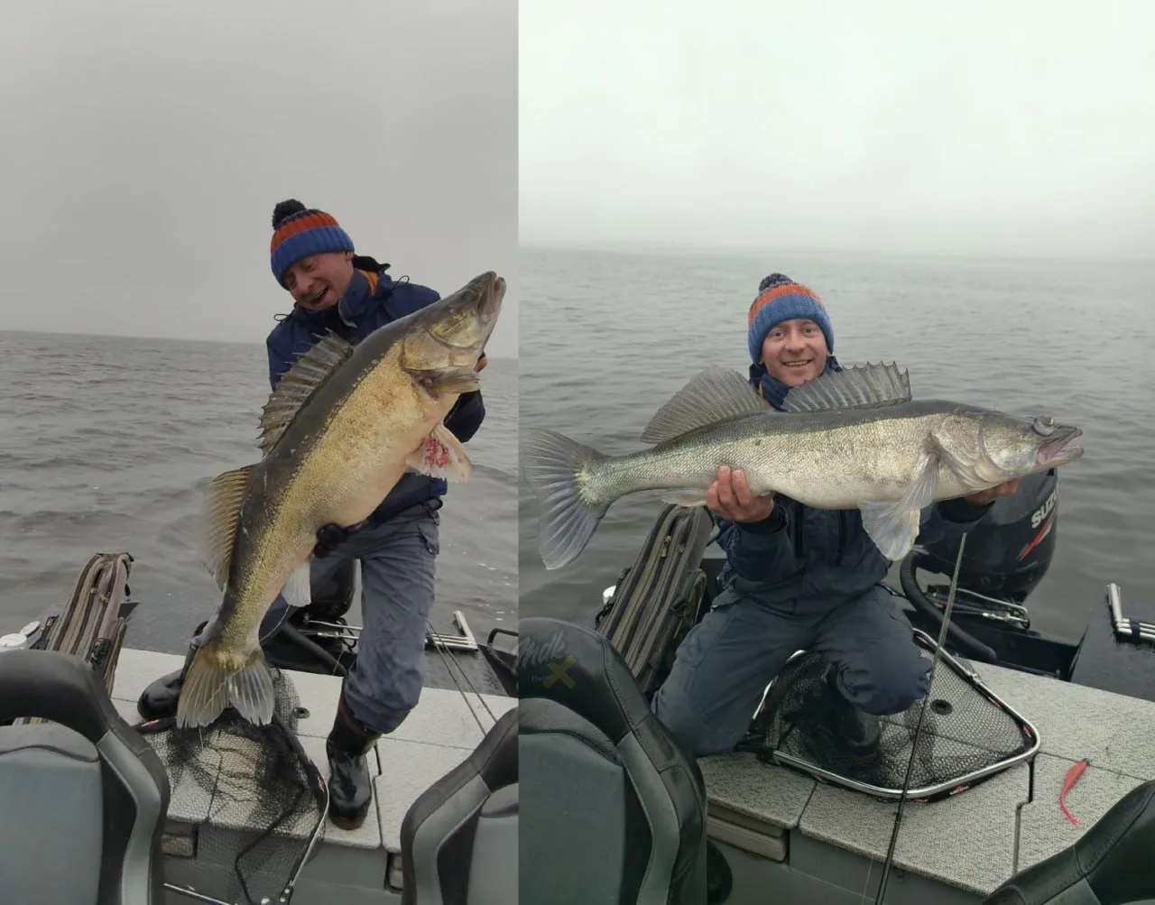 Один вытащил целую охапку судаков-мутантов, другой — сома такой длины, что фото пришлось делать панорамой.