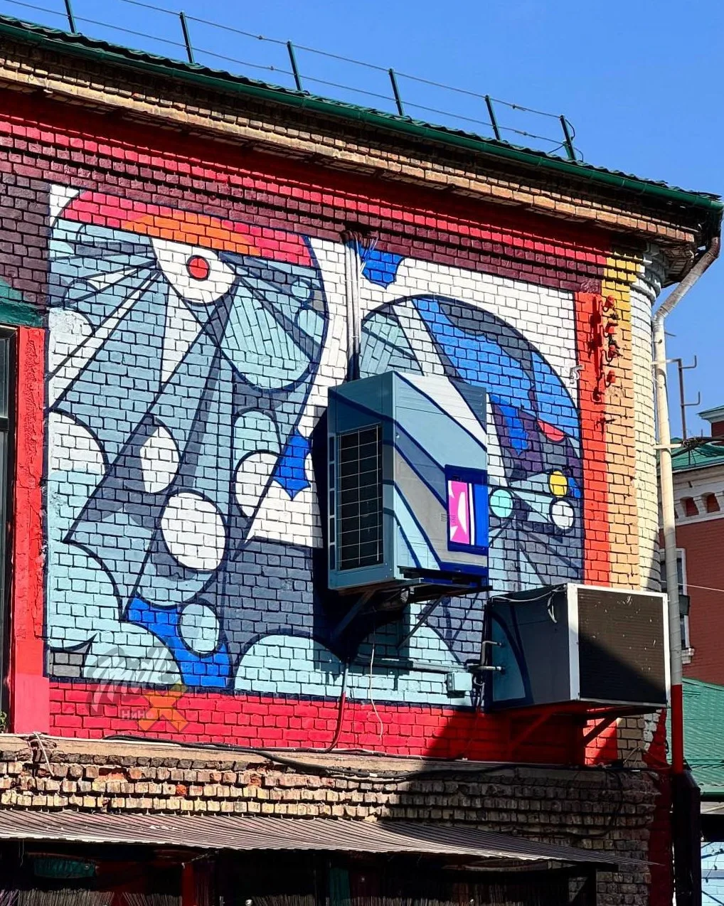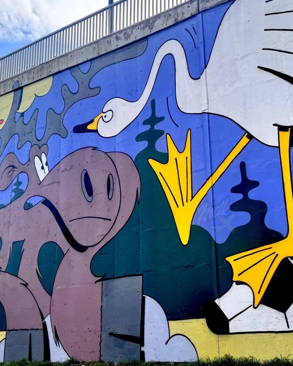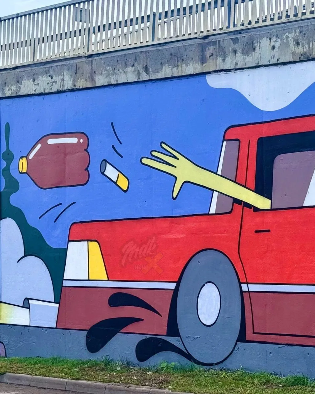 🎨Новое крутое граффити появилось на подпорной стене Метромоста и Зеленском съезде