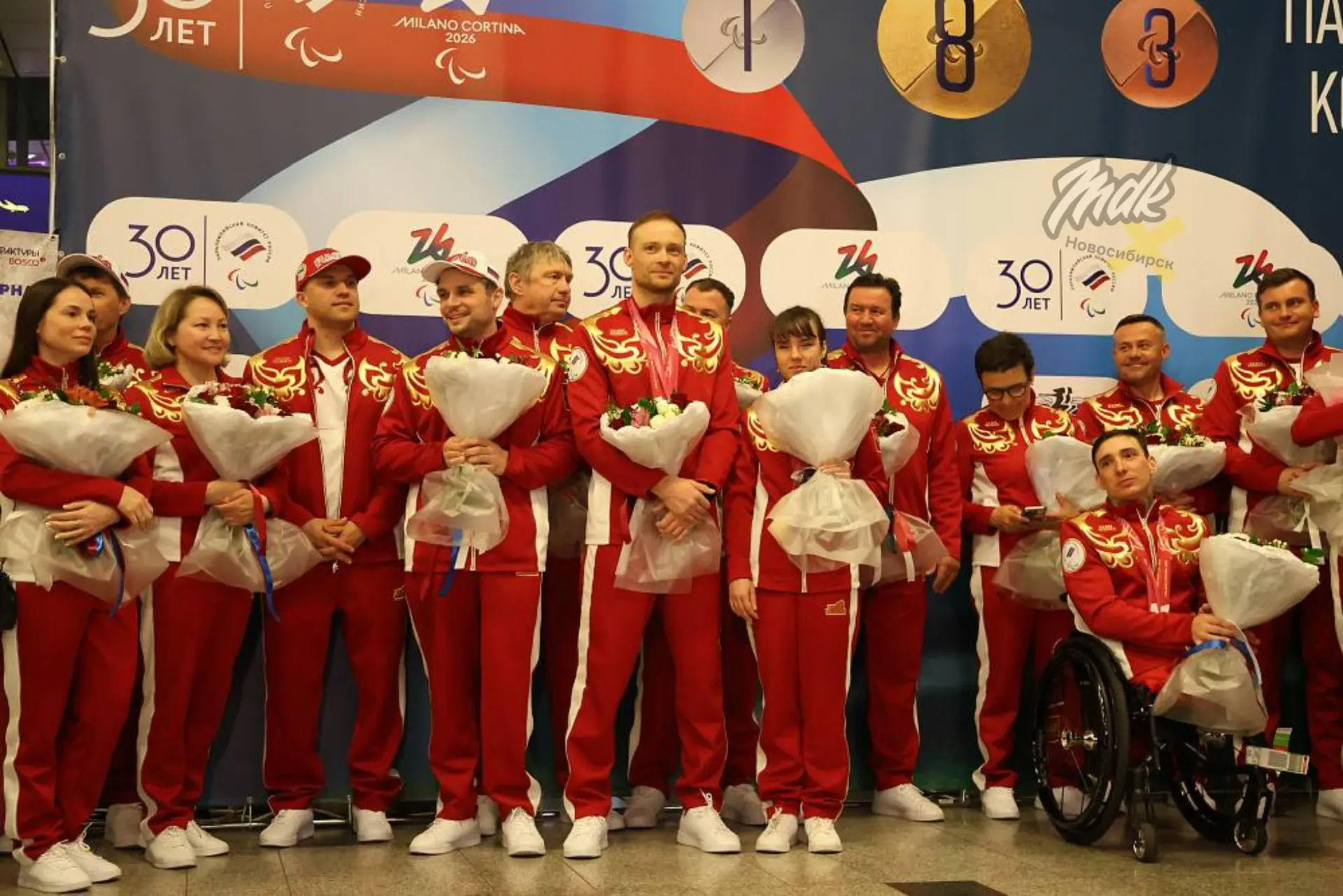 🇷🇺 Паралимпийскую сборную России торжественно встретили во «Внуково» после зимних Игр в Италии. Команда заняла третье место в общем зачёте, завоевав 8 золотых, 1 серебряную и 3 бронзовые медали, спортсменов встречали с флагами, гимном и наградами