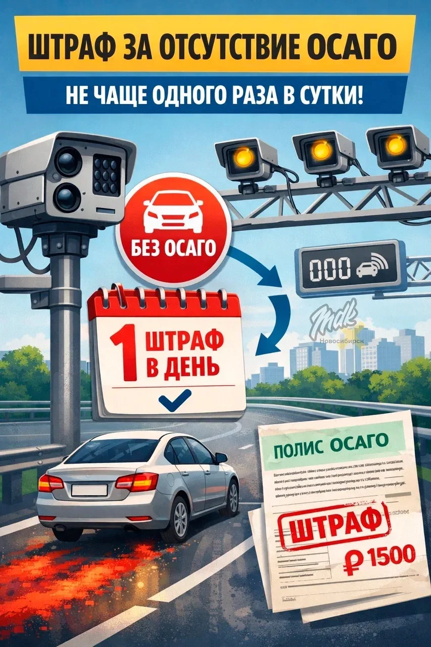 🚗 Камеры начнут штрафовать водителей без ОСАГО, но не чаще одного раза в сутки. Даже если машина попадёт на несколько камер за день, придёт только один штраф