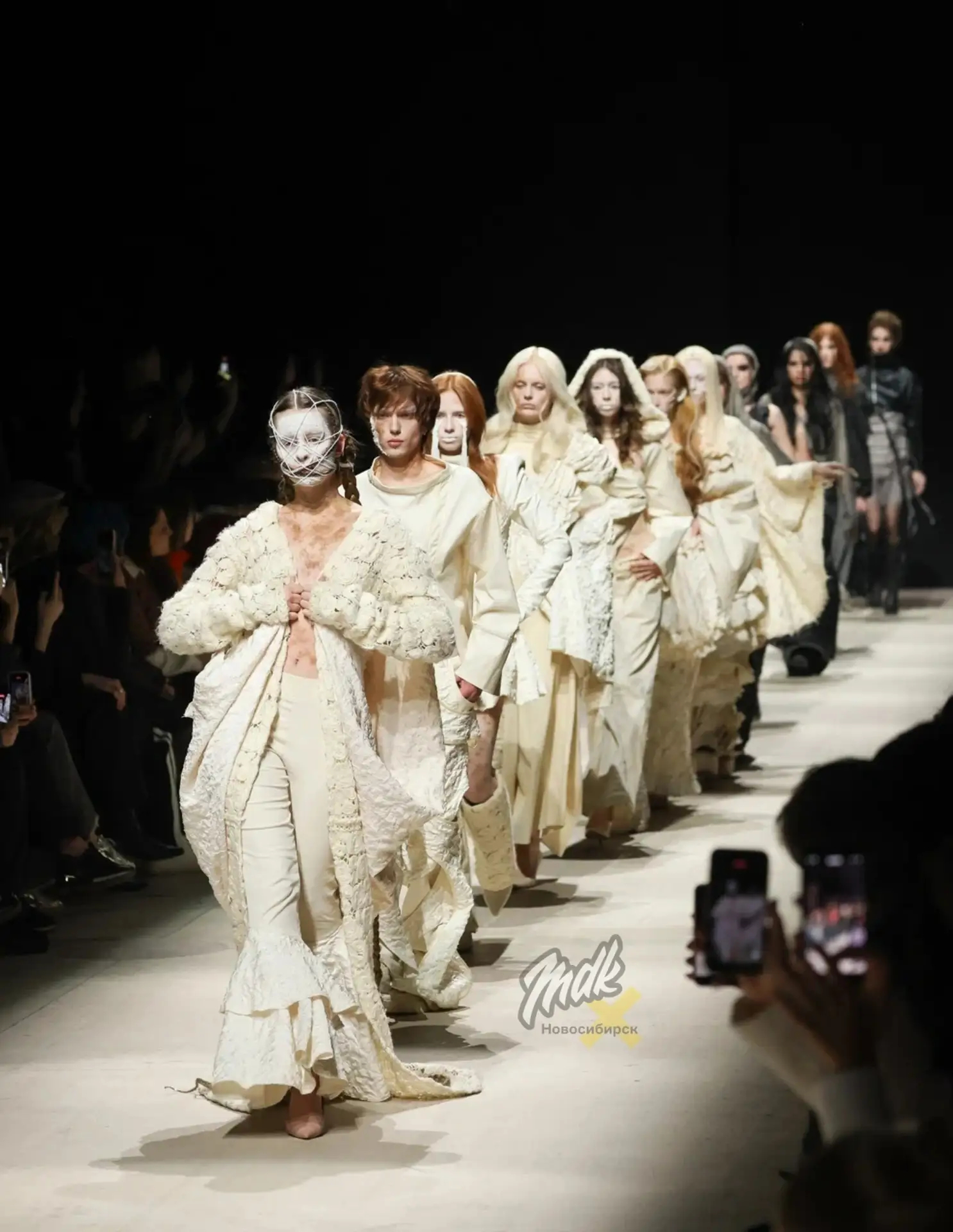 Наши землячки представили линейку с футуристичными и дерзкими образами, вдохновлёнными природой и народным костюмом. Главным элементом стала клетка — её обыграли в одежде и аксессуарах, соединив традиции и современность.