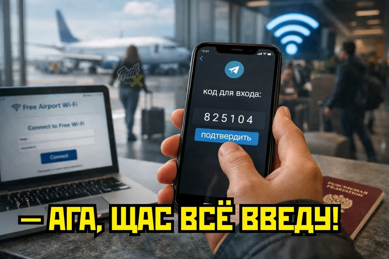 Мошенники пытались угнать Telegram-аккаунты людей, создав фейковую сеть в аэропорту. Один из пассажиров решил подключиться к «бесплатному Wi-Fi», но вовремя заметил, что «код подтверждения» это одноразовый пароль для входа в его аккаунт.