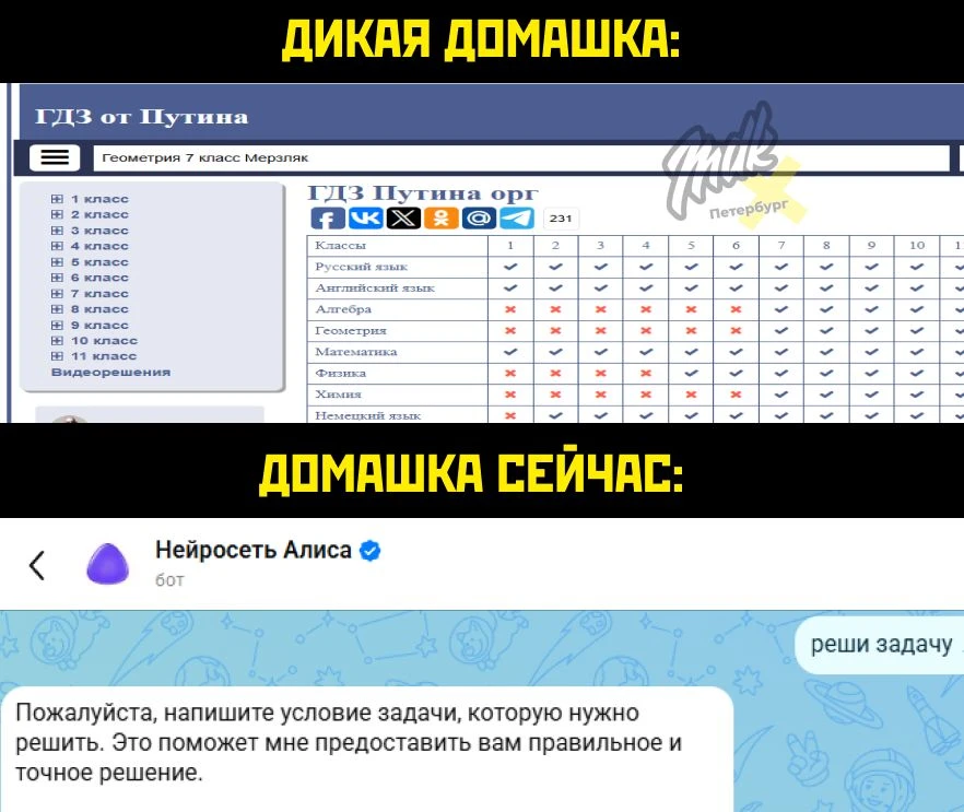 Из Сбера — GigaChat, а из Яндекса — Алису, которая, кстати, лучше всех помогает школьникам с домашним заданием 📚