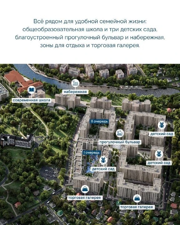 река, парки, прогулочный бульвар, кафе и торговая галерея рядом с домом