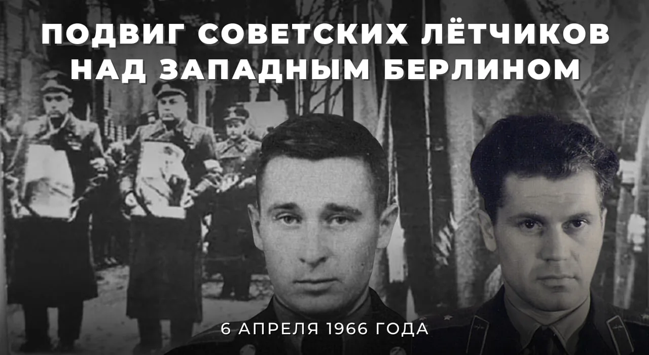🛩 6 апреля 1966 года в небе над Западным Берлином советские лётчики Борис Капустин и Юрий Янов совершили свой бессмертный подвиг. Герои смогли увести падающий экспериментальный самолёт в сторону от жилых районов города, отказавшись катапультироваться, — ценой своих жизней предотвратили жертвы среди гражданского населения.
