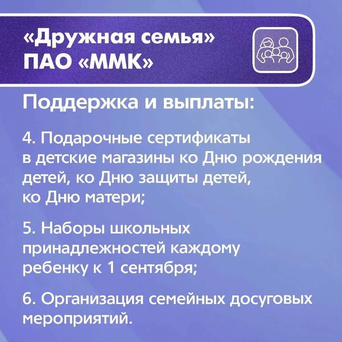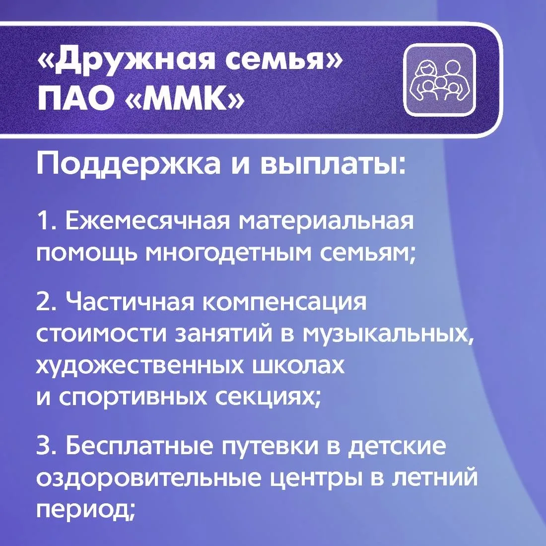 «Охрана материнства и детства» и «Дружная семья» – две масштабные социальные программы, действующие на ММК уже не первый десяток лет. Комбинат реализует их совместно с благотворительным фондом «Металлург».