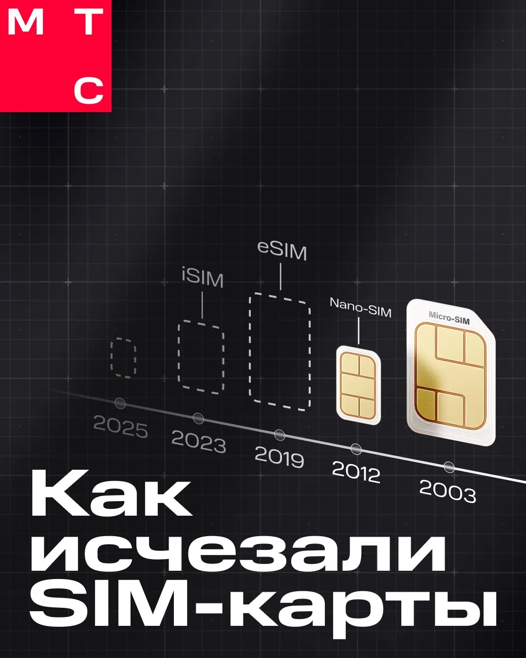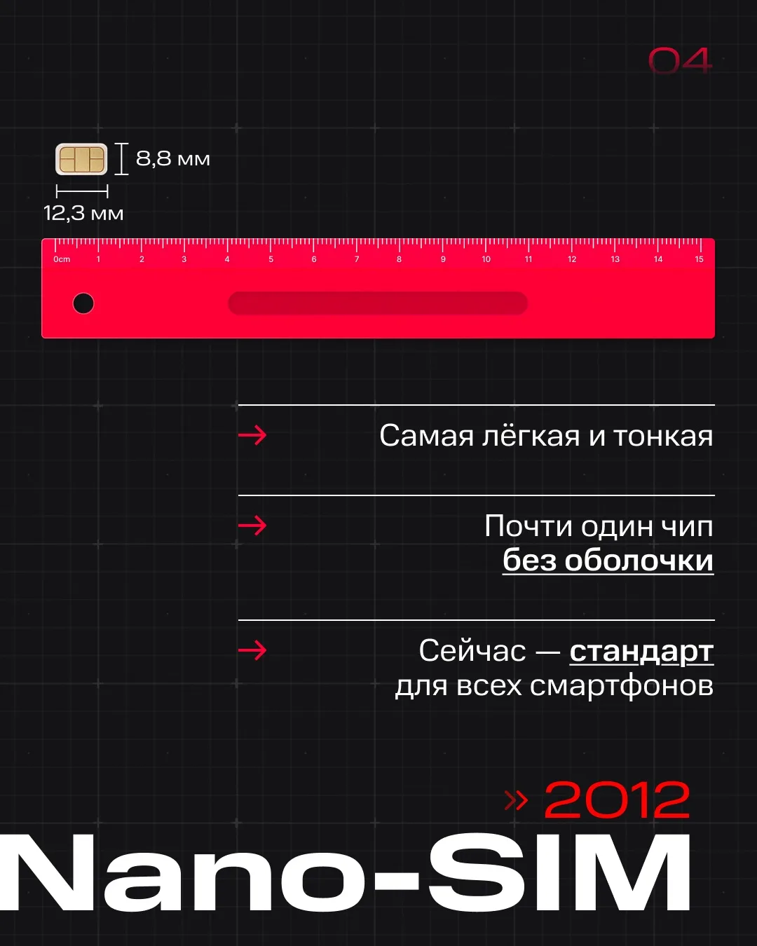 Показываем, как менялся формат SIM и что пришло ему на смену. Смотрите карточки!
