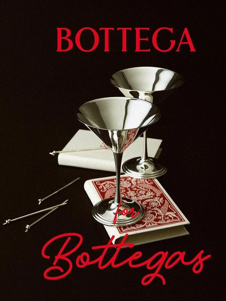 У Bottega Veneta в рамках проекта Bottega for Bottega’s, где бренд сотрудничает с ремесленниками и мастерскими, вышел такой вот стильный набор: блокнот для записи рецептов коктейлей, бокалы для мартини и металлические шпажки. Мастера из Милана, Венеции и Нью-Йорка объединились вместе, чтобы создать этот набор. Однозначный вишлист.