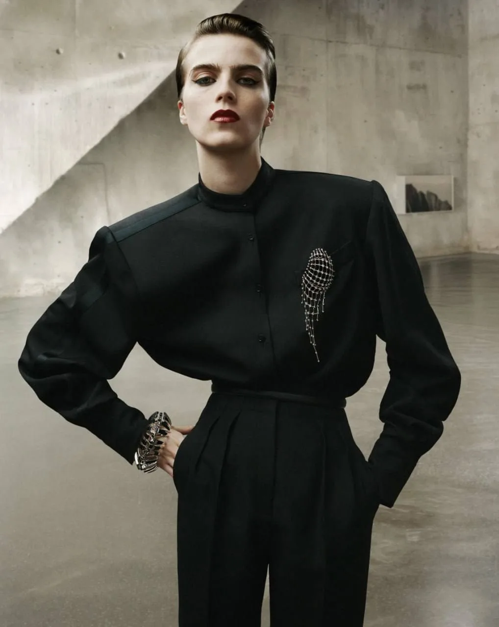 В ней Кастро Фрейтас хочет вернуться к основе Mugler — к конструкции и крою. Это для дизайнера вообще основная мысль. По случаю скорого выхода коллекции было решено выпустить и кампейн. Первый, кстати, под авторством нового дизайнера.