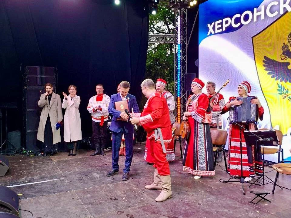 🇷🇺 Заслуженный коллектив народного творчества ансамбль «Сказ» при поддержке Правительства Псковской области принял участие в торжественных мероприятиях в честь Дня воссоединения новых регионов с Россией в городе Геническе Херсонской области.