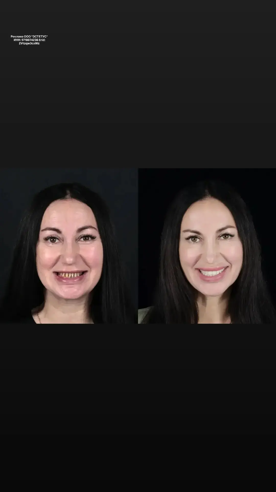 Серьёзные проблемы с зубами, пародонтит — зубы шатались, боль, постоянный дискомфорт. Но хуже всего был даже не это, а стыд. Она прикрывала рот рукой, избегала фото, в общем, испытывала максимальное стеснение 🙈 Кому знакомо?)