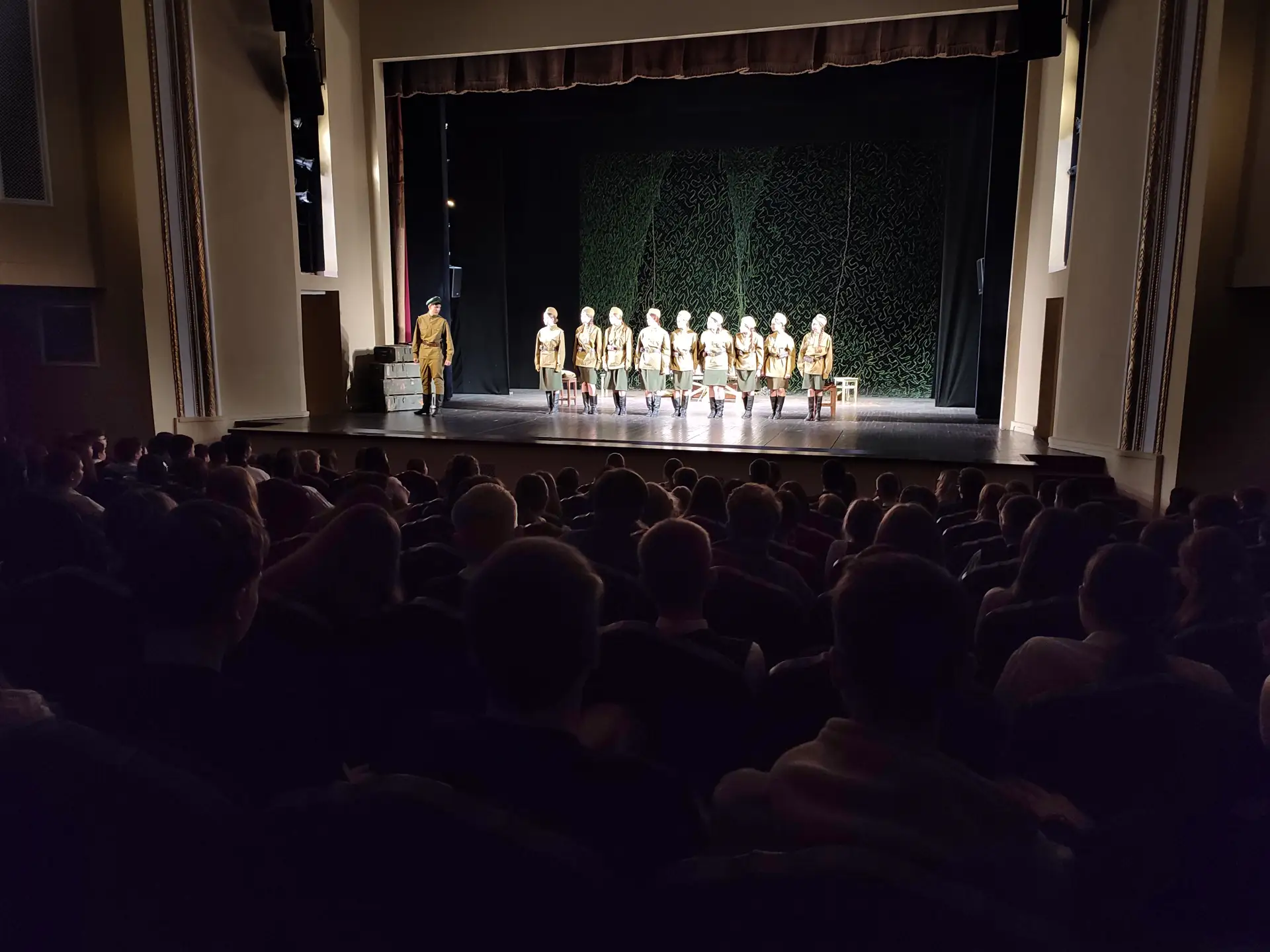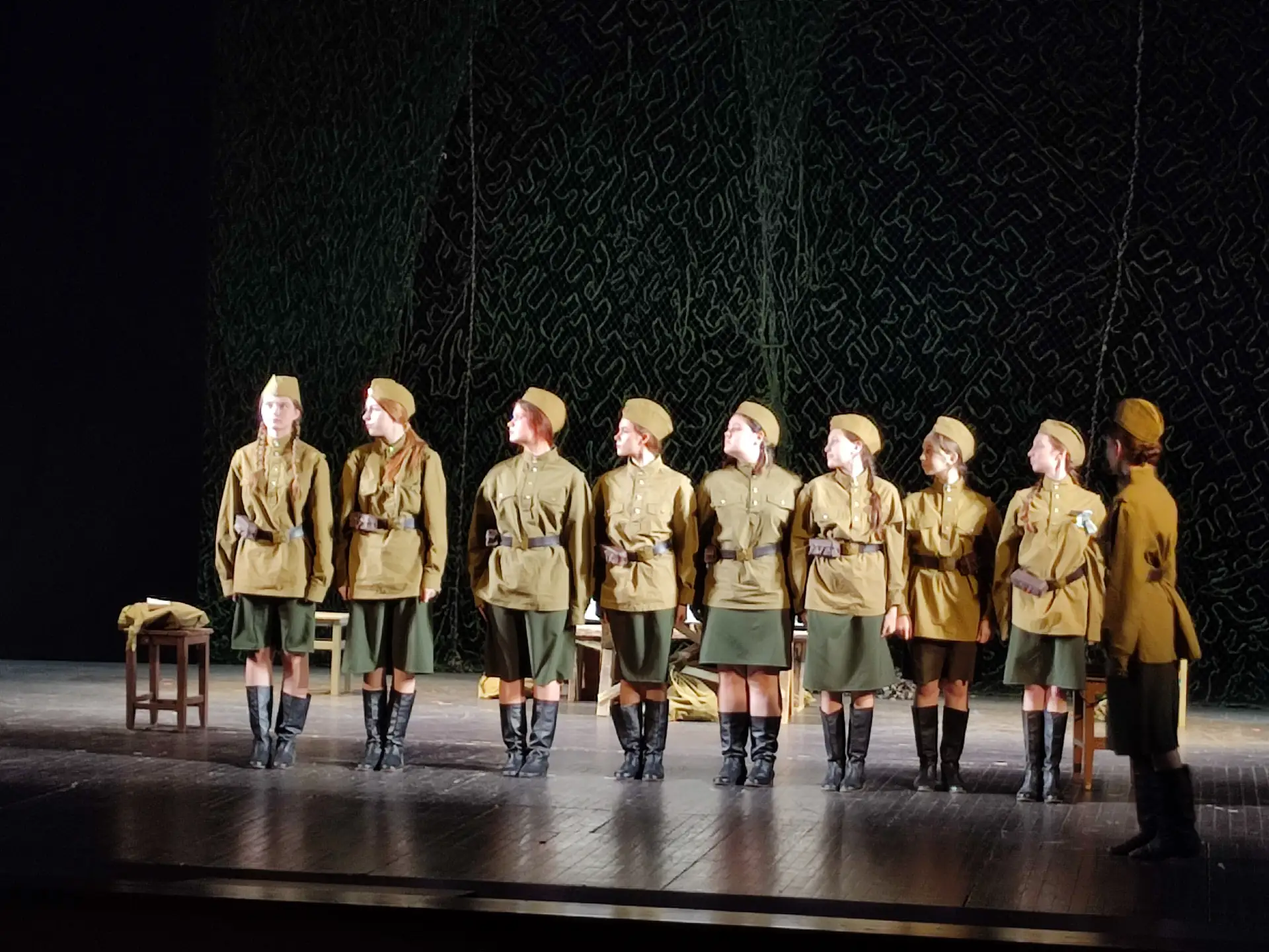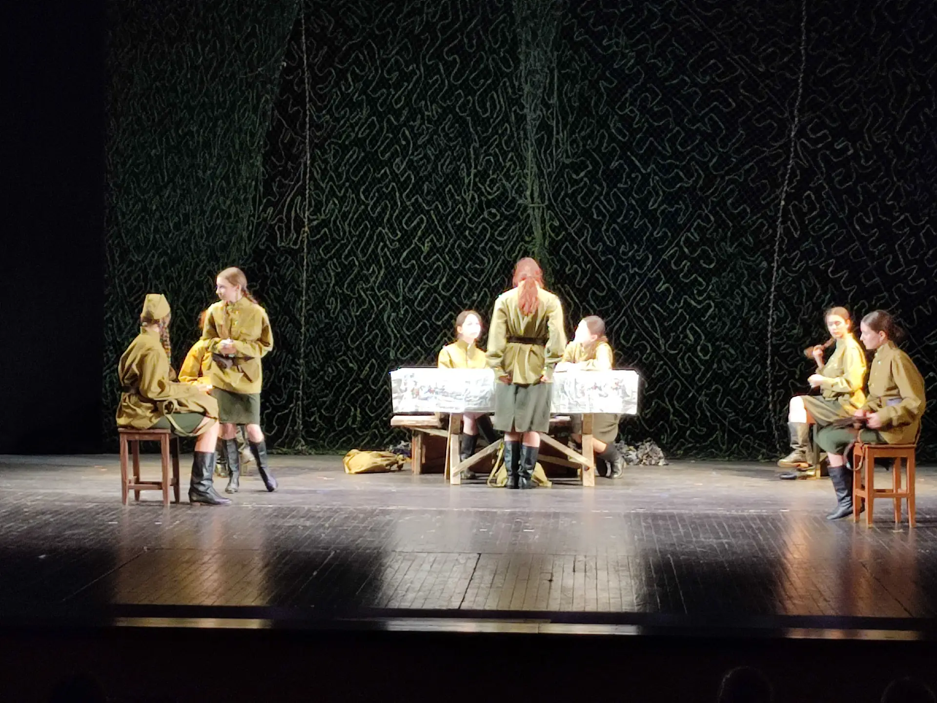 Сегодня на сцене Государственного русского драматического театра РМ для школьников Саранска прошёл спектакль "А зори здесь тихие" детской студии "Мгновение" МБУ ДО "Дом детского творчества" г. Ковылкино. Показ состоялся в рамках очного этапа регионального отбора фестиваля детских и молодёжных театральных коллективов "Театральное Приволжье".