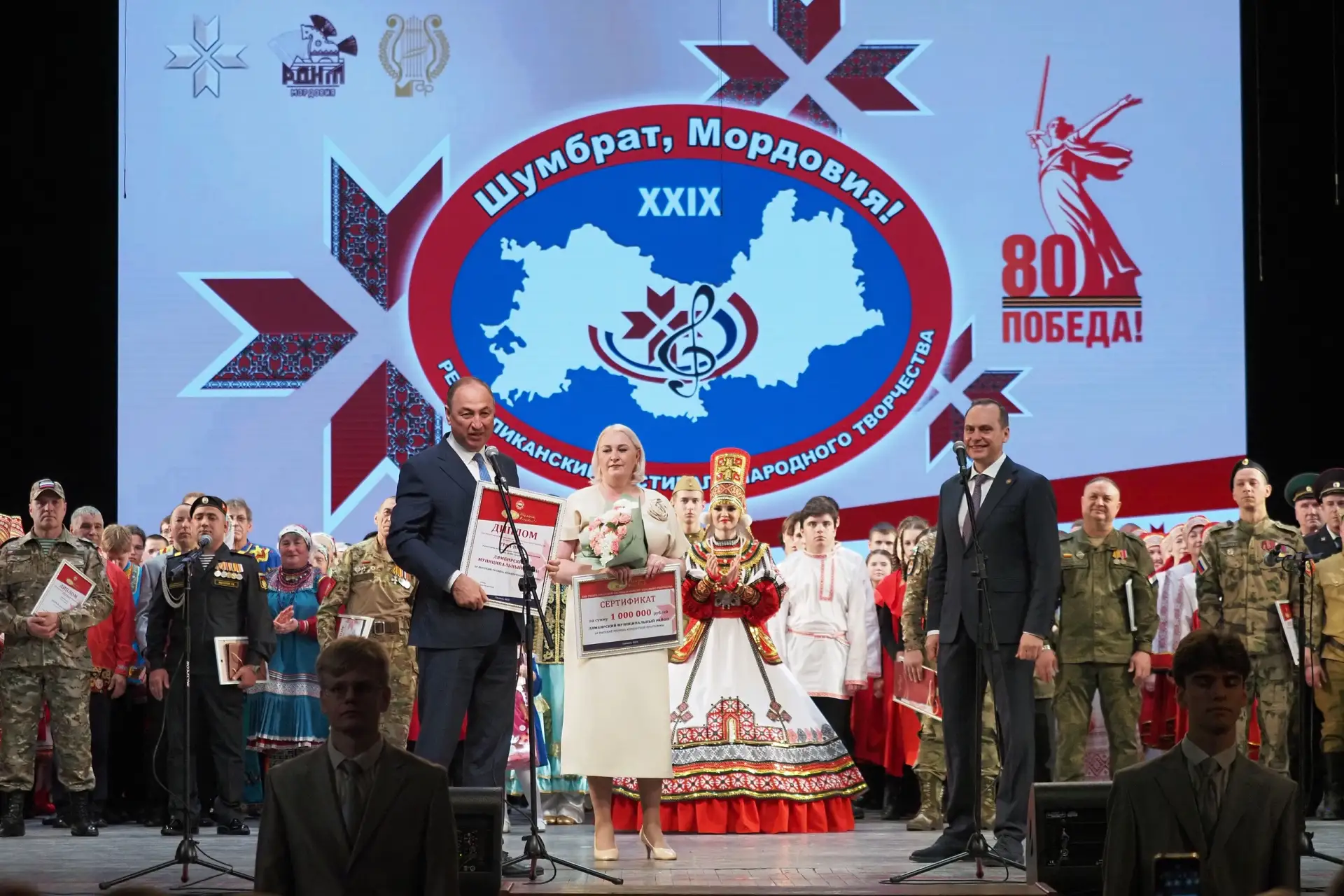 диплом лауреата III степени и сертификат на 300 тысяч рублей вручили творческим коллективам Темниковского района,