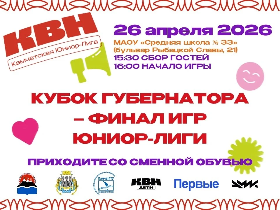 Приглашаем всех на главное событие этого сезона! В Финале встретятся сильнейшие юные команды Камчатки, чтобы сразиться за Кубок Губернатора и путёвки на XV Международный Фестиваль детских команд КВН!