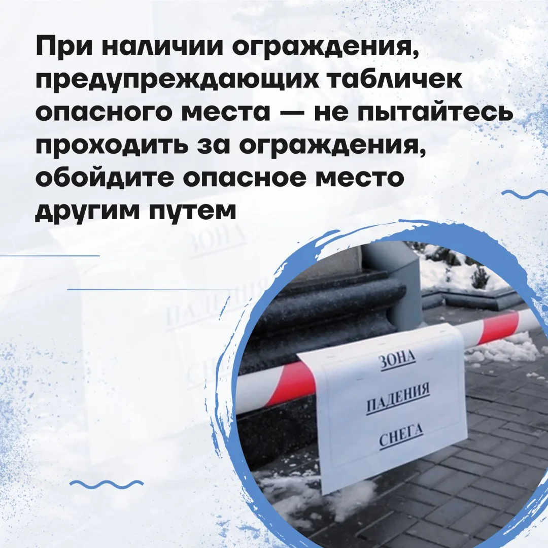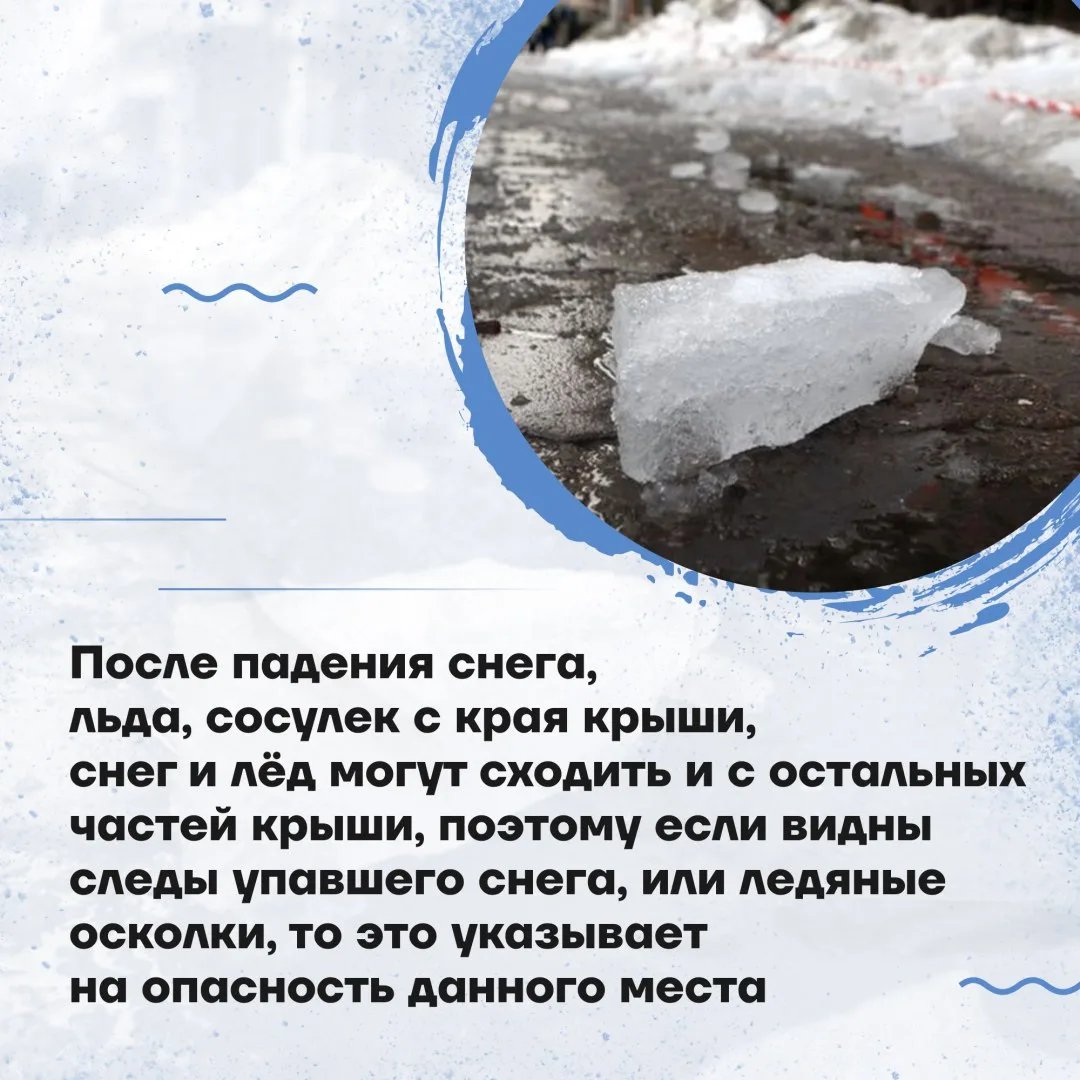 В зимнее время, особенно в период обильного выпадения осадков, стоит помнить о риске схода снега с крыш и падения сосулек.