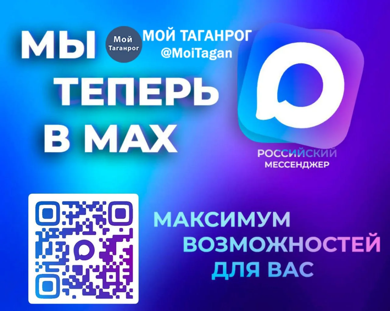 Присоединяйтесь к нашему каналу в MAX и оставайтесь в курсе важных событий Таганрога и Ростовской области! Если Телеграм будет недоступен - национальный мессенджер MAX всегда будет онлайн!
