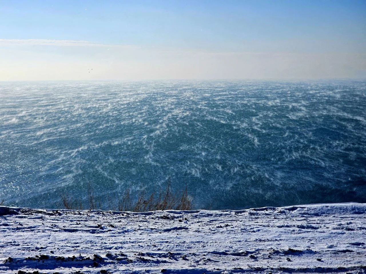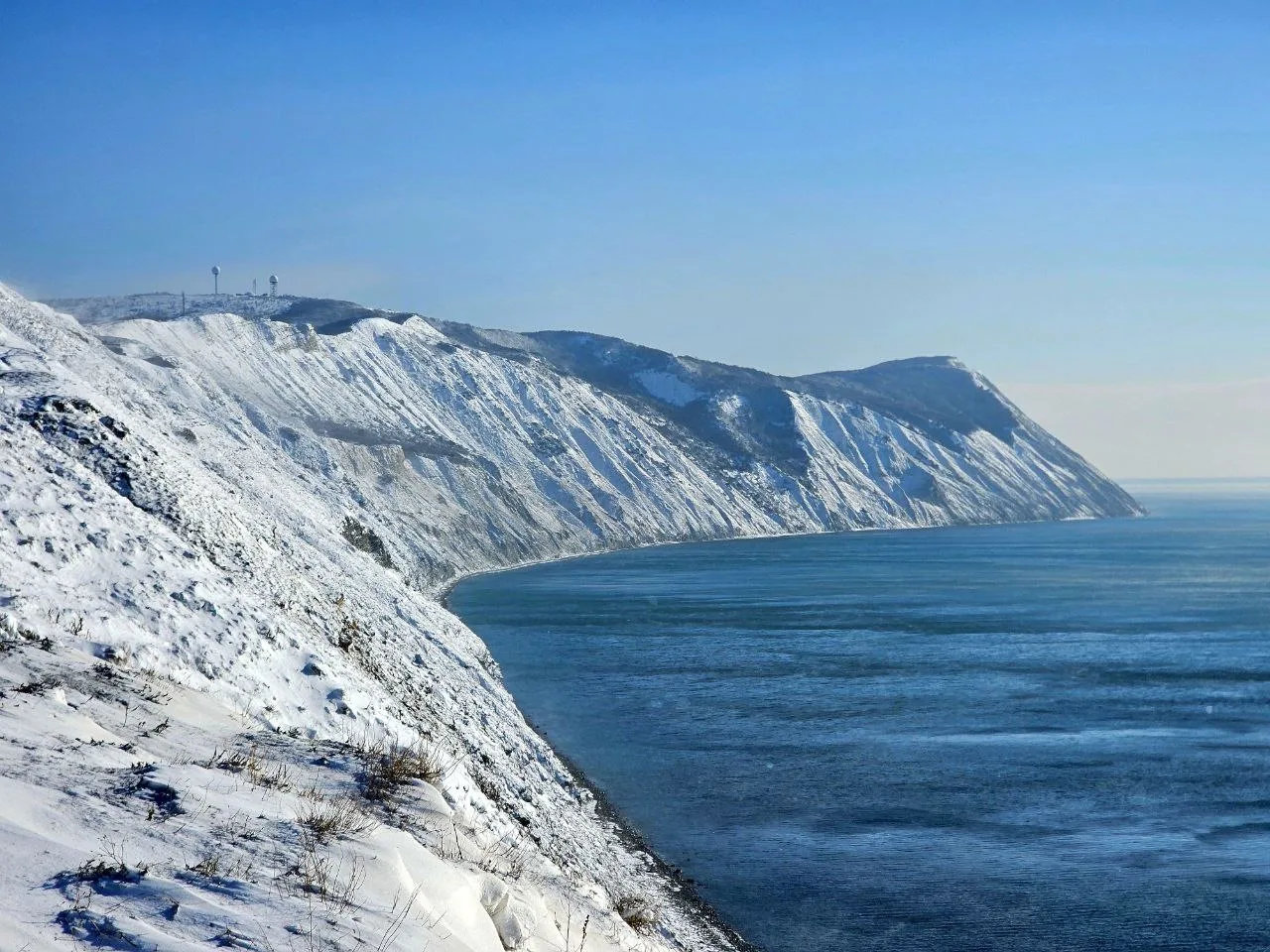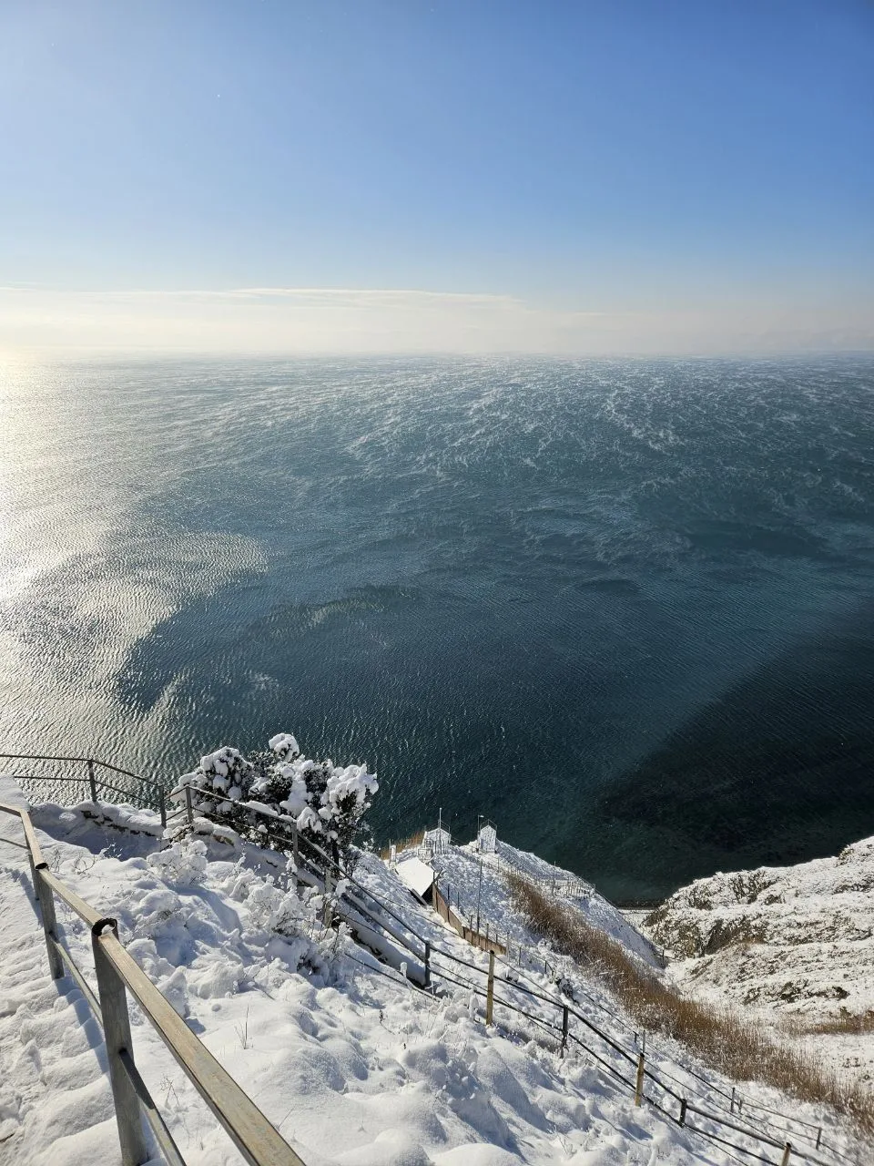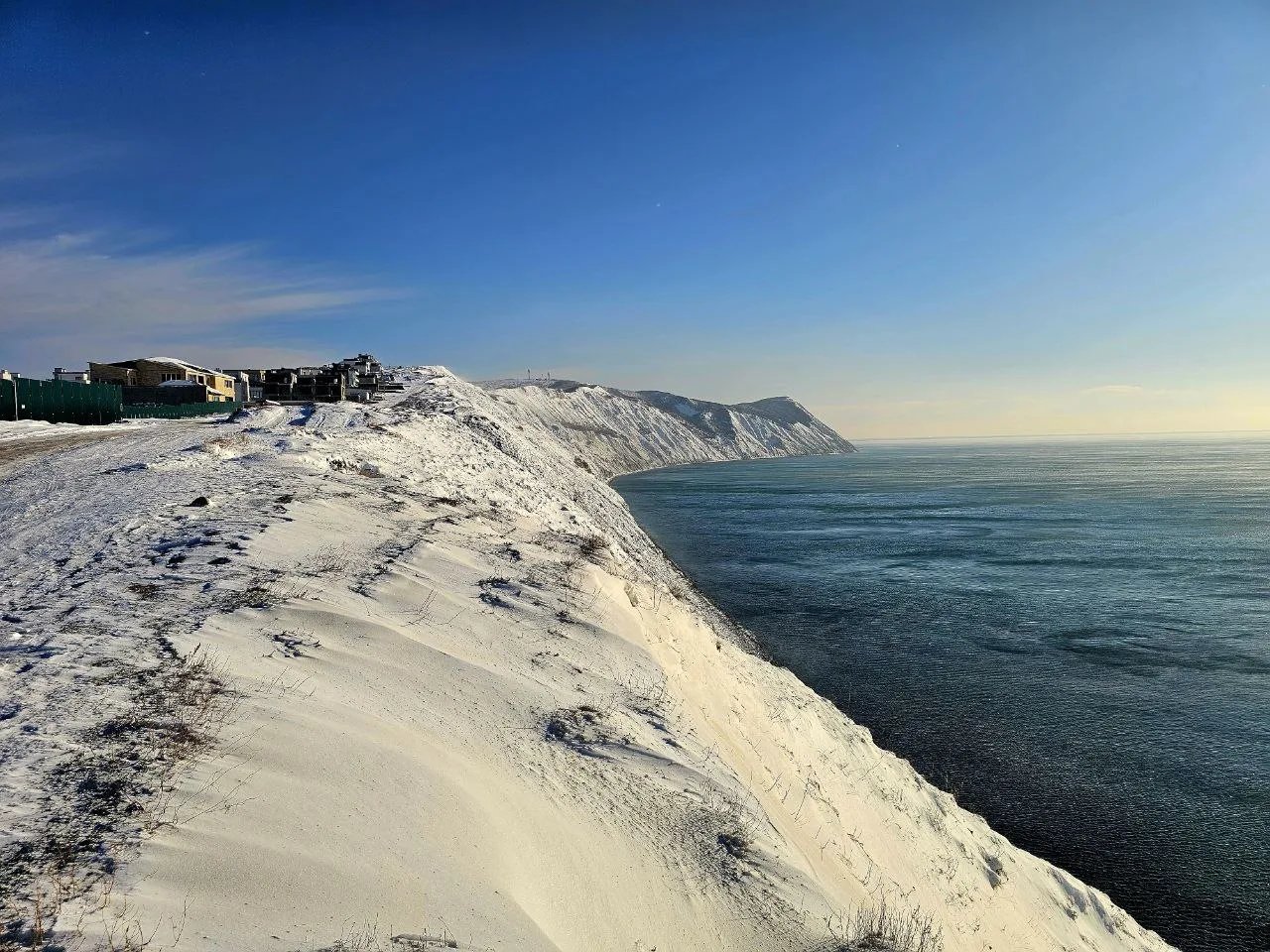 Посмотрите какое кайфовое чистое море и немного заснеженный берег.