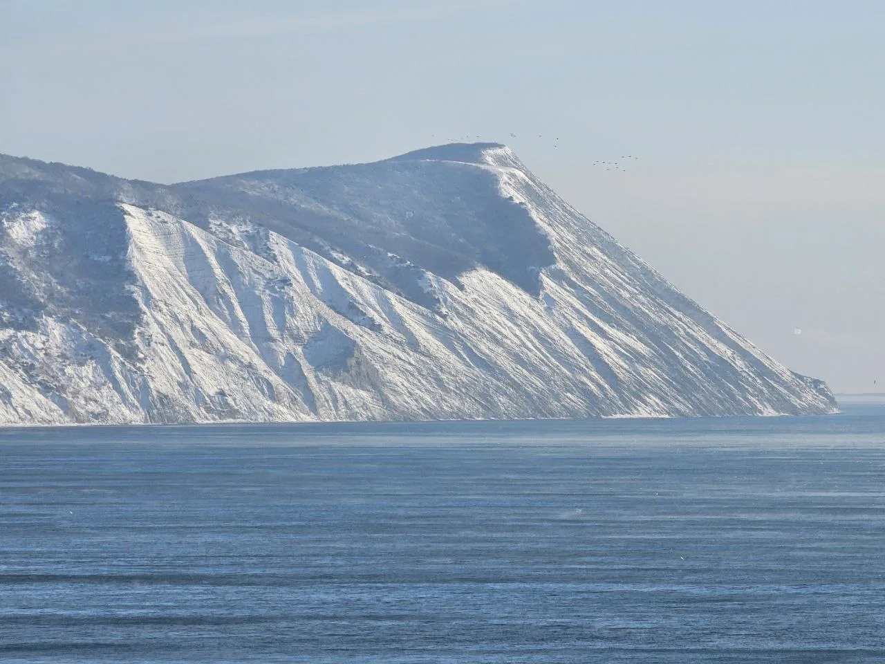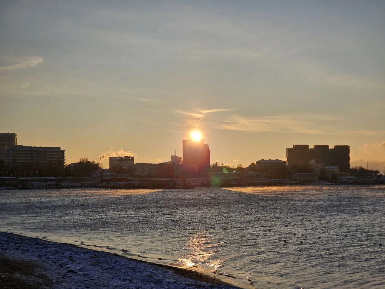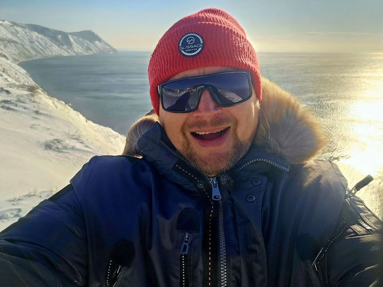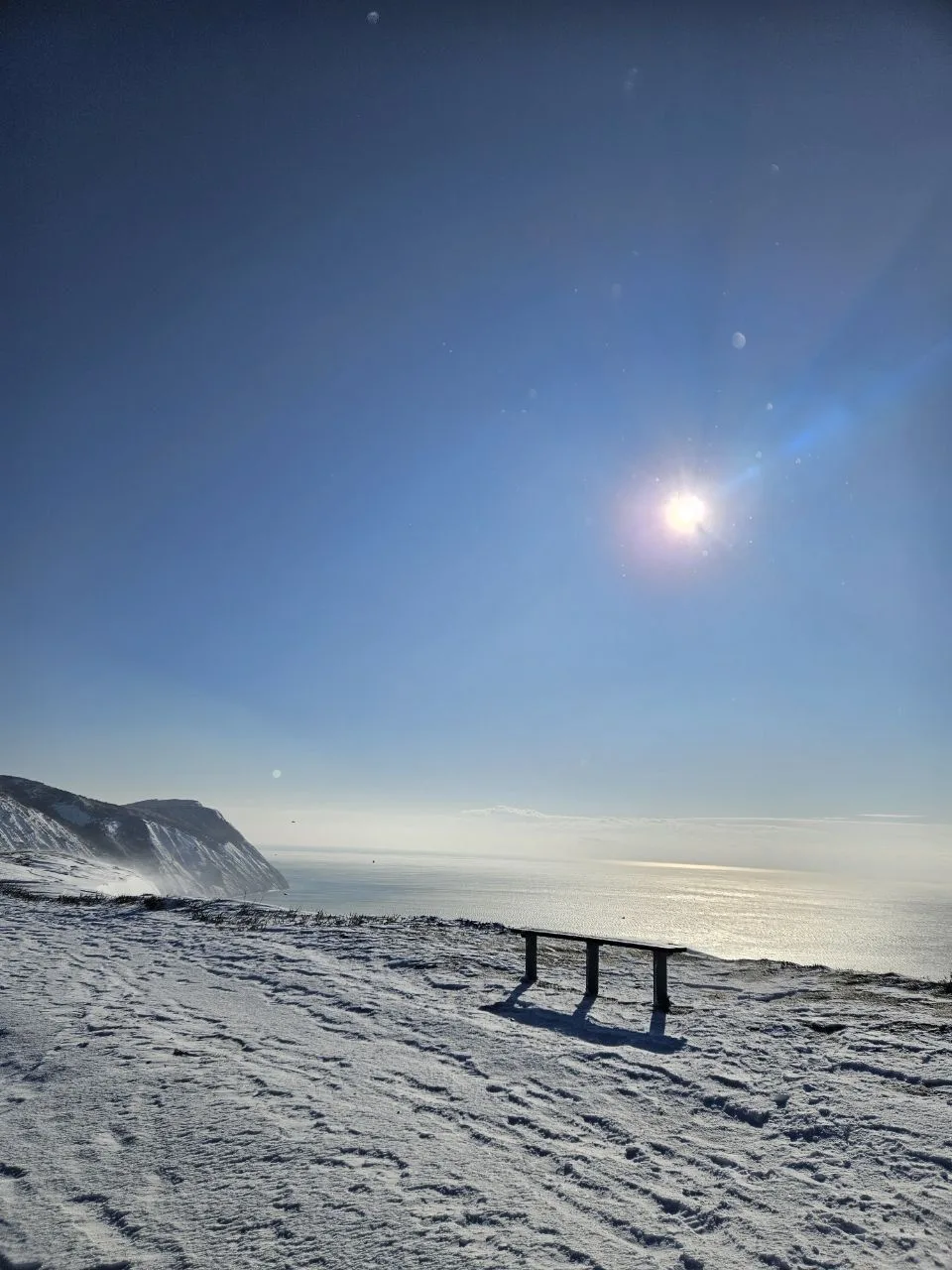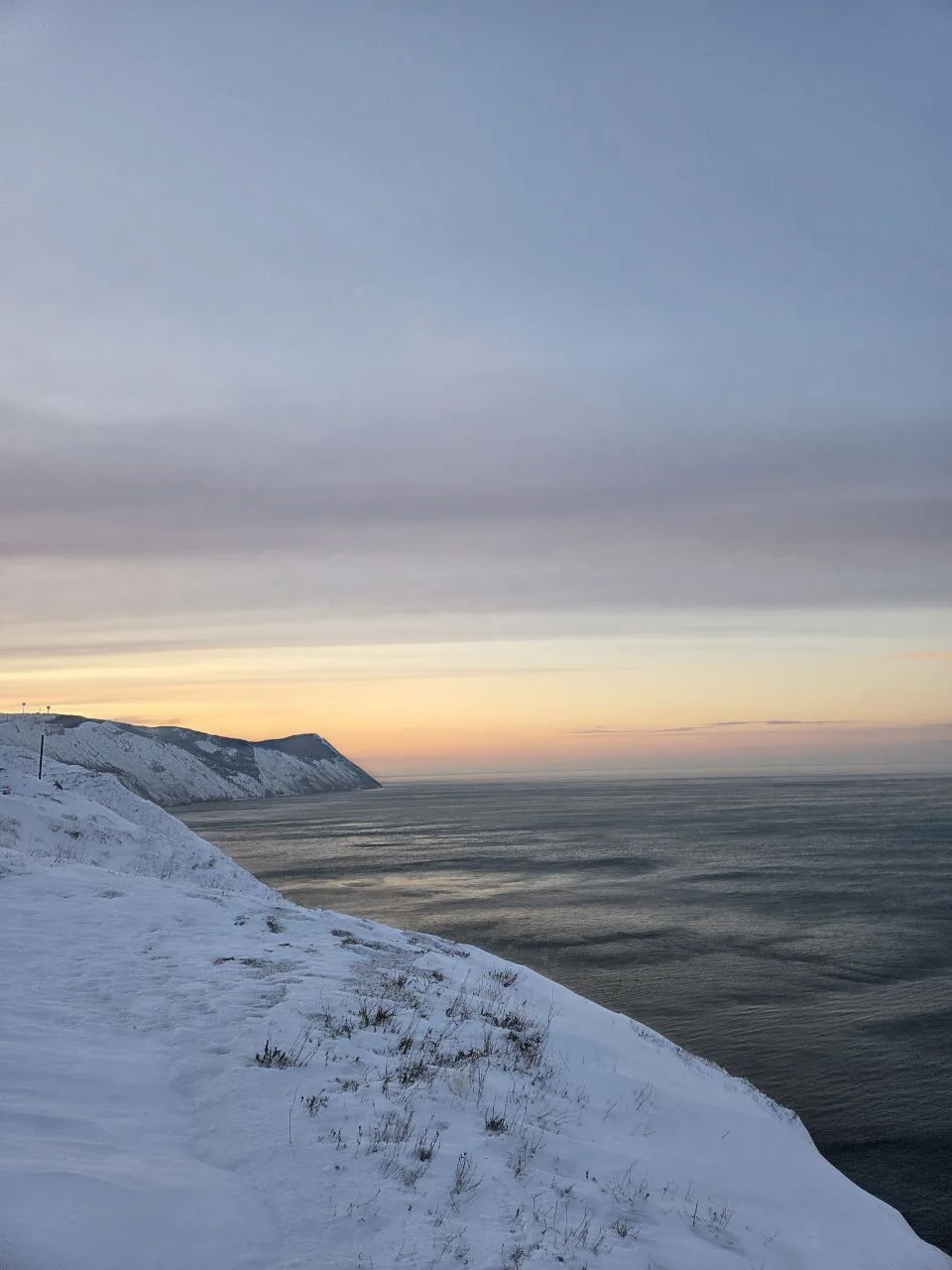 Посмотрите какое кайфовое чистое море и немного заснеженный берег.