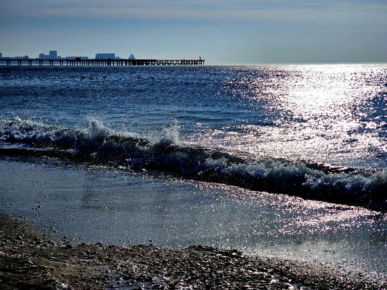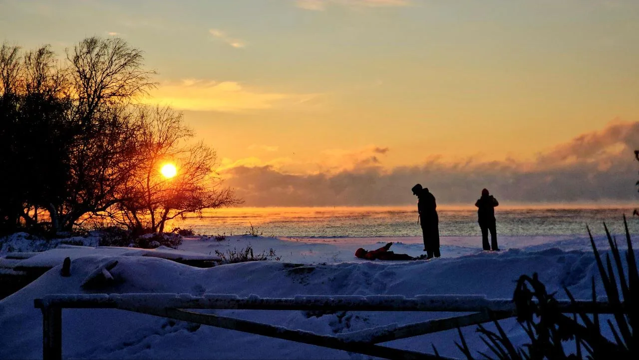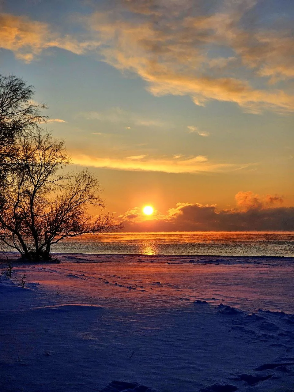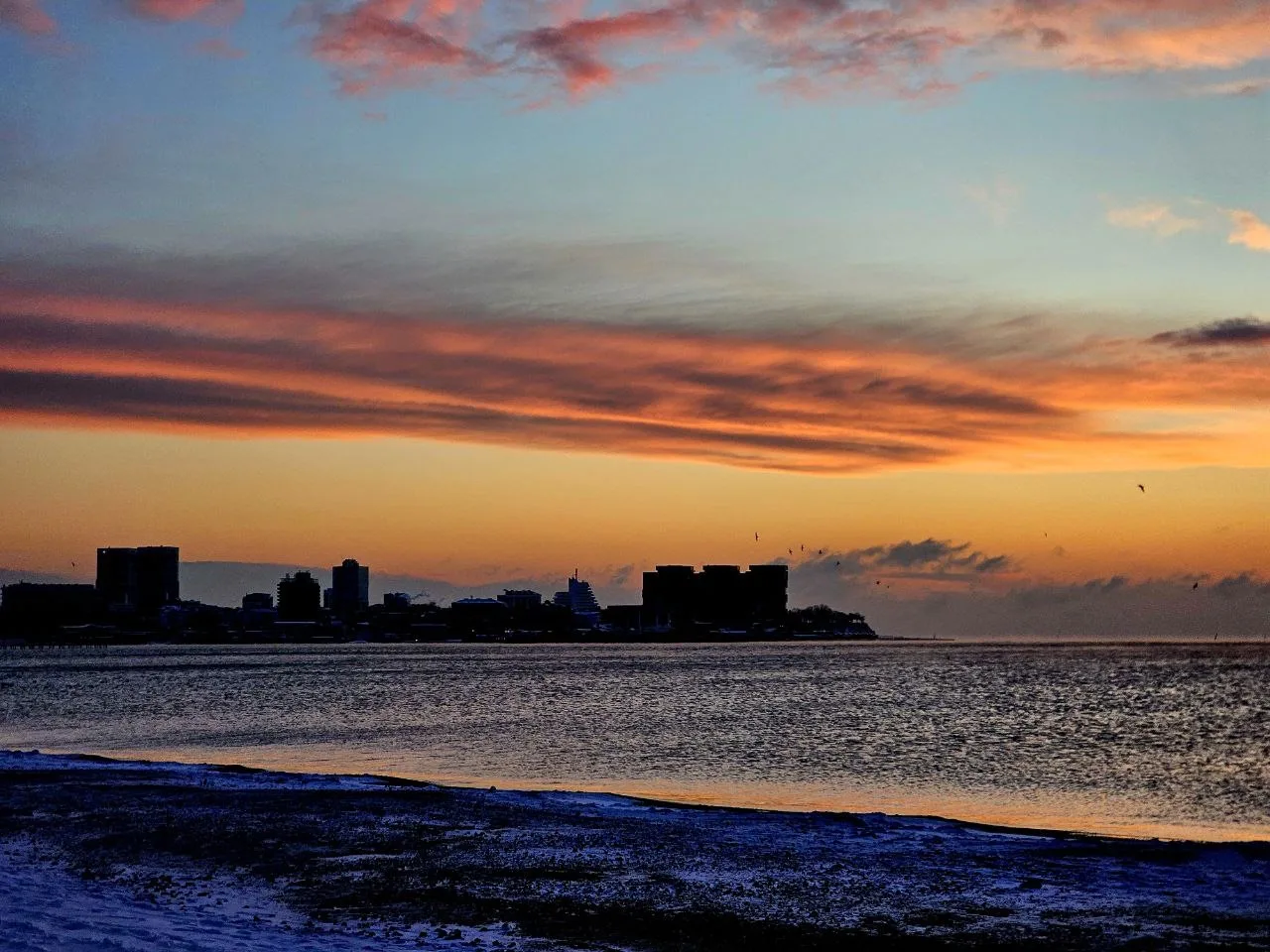 Посмотрите какое кайфовое чистое море и немного заснеженный берег.