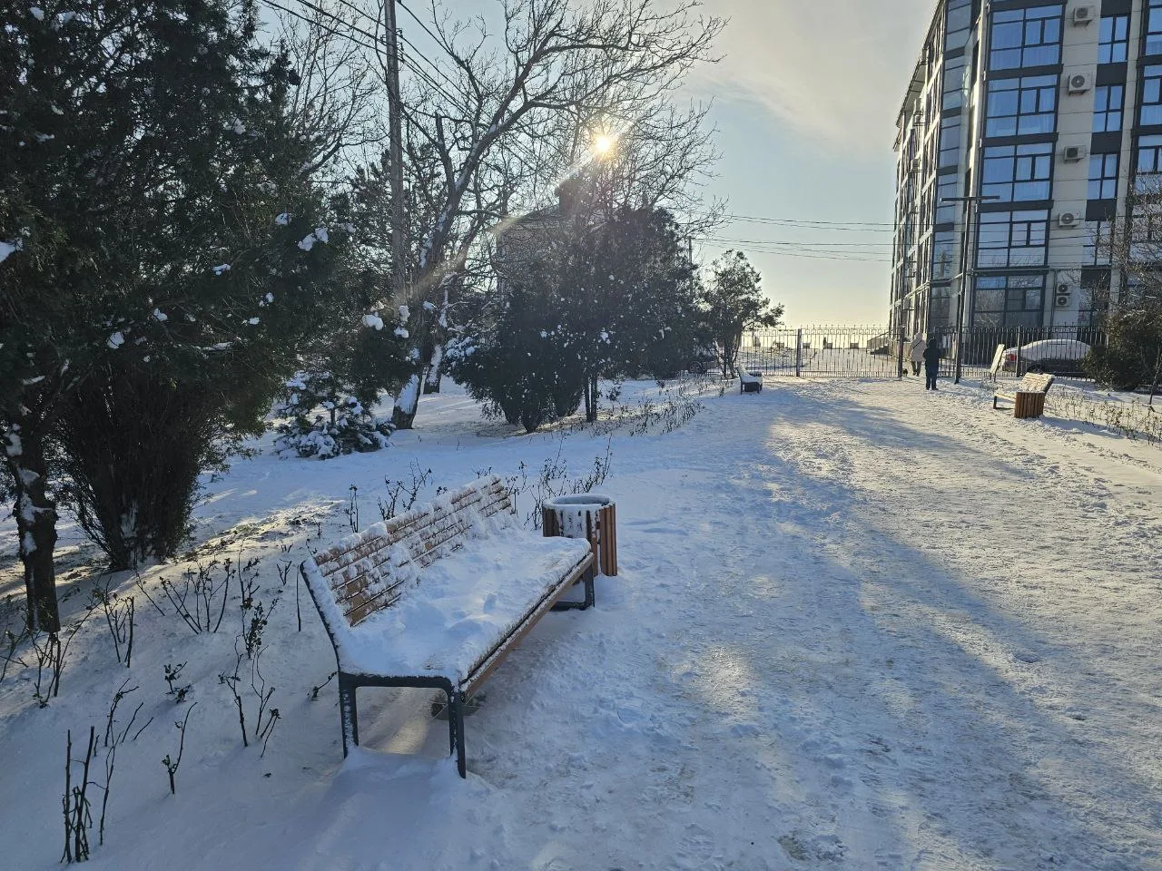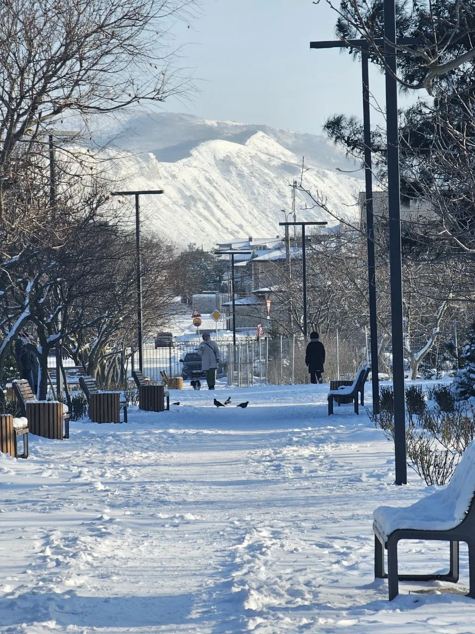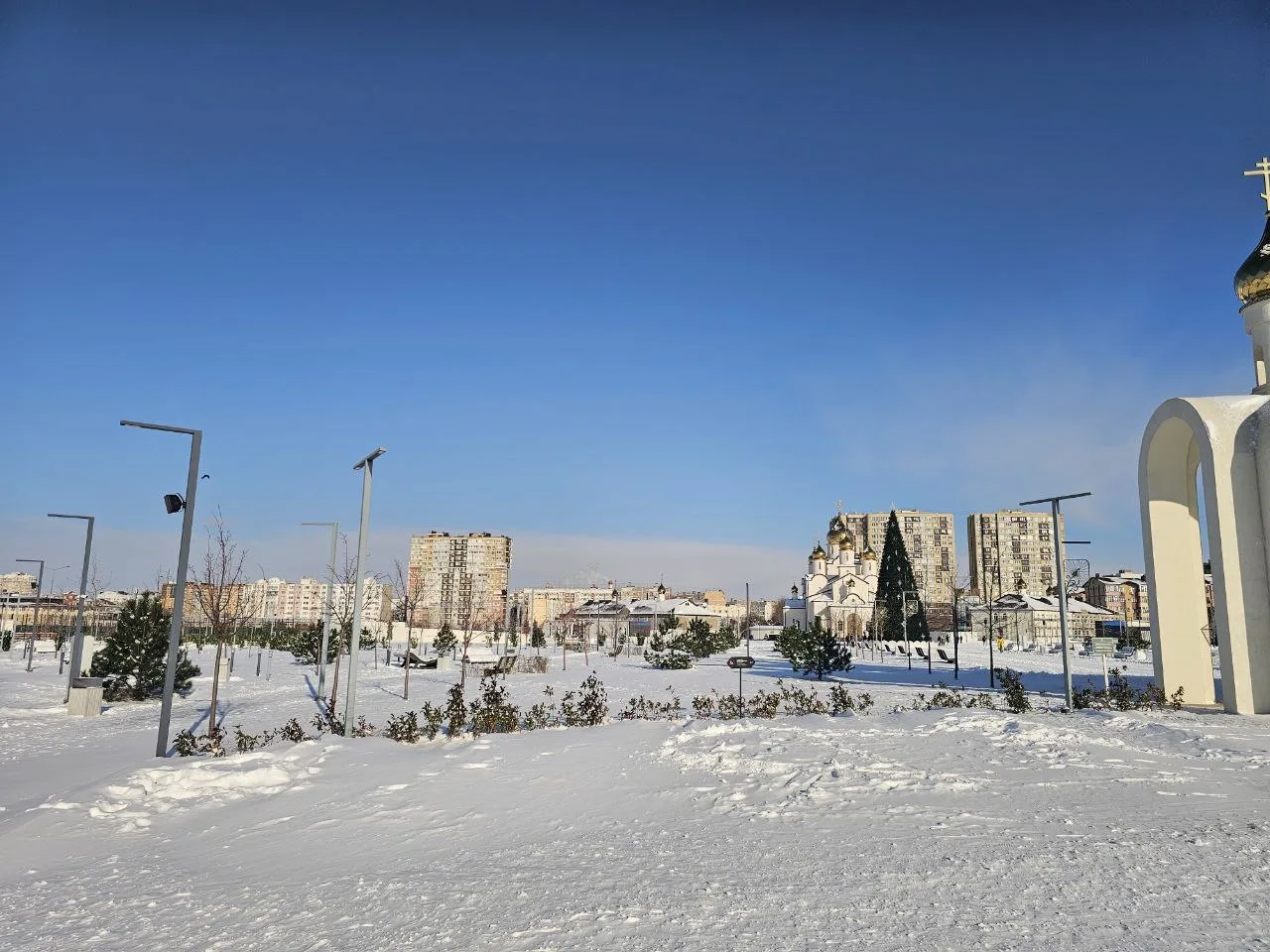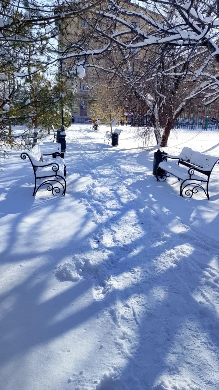 Пышное, плотное снежное одеяло на улицах. Стоит устойчивый минус.