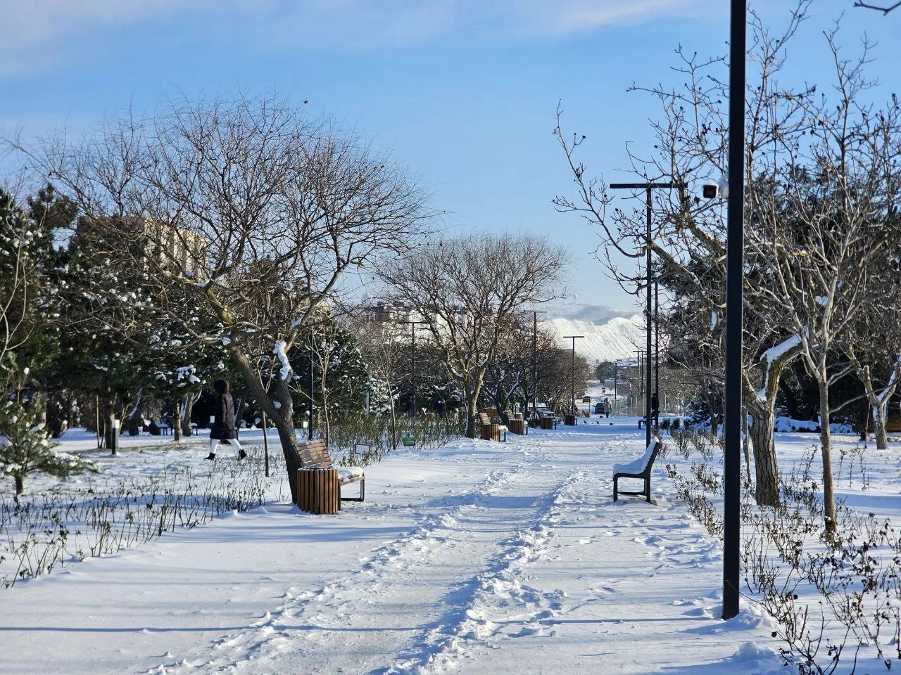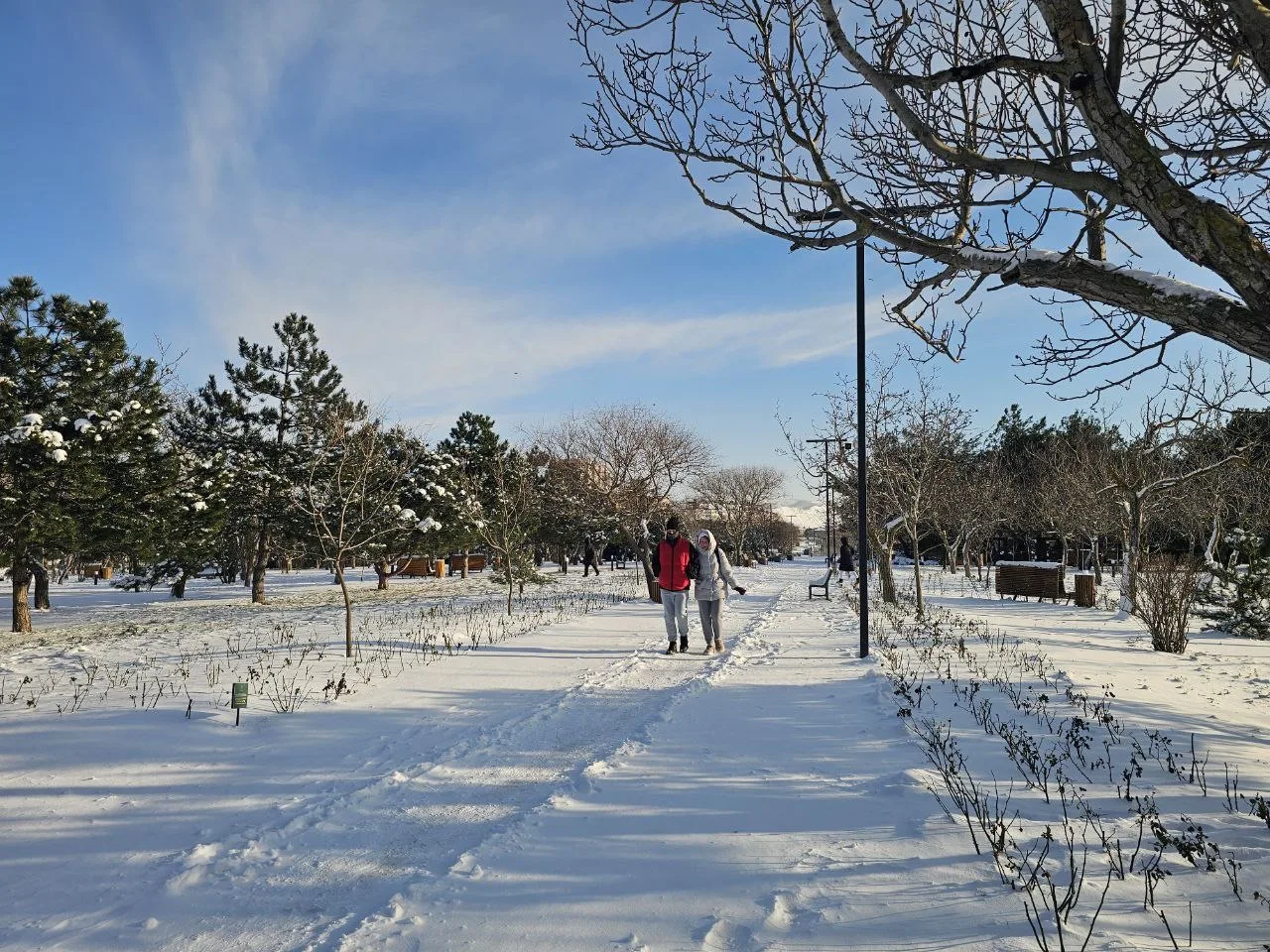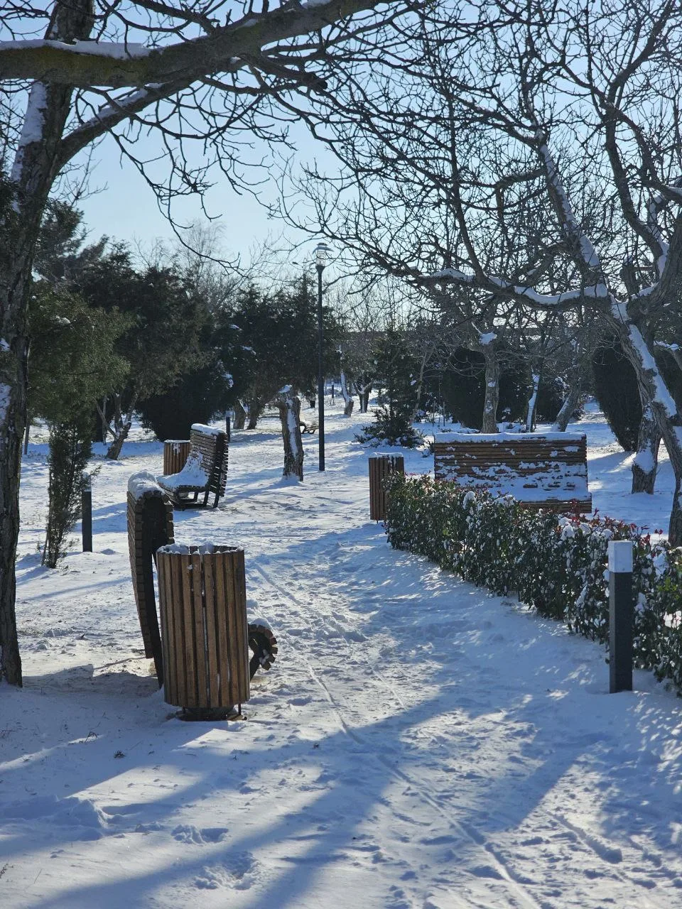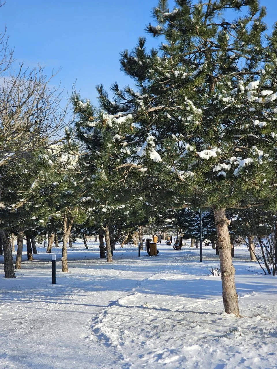 Пышное, плотное снежное одеяло на улицах. Стоит устойчивый минус.