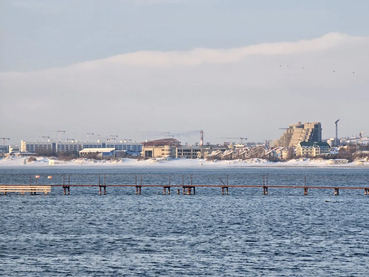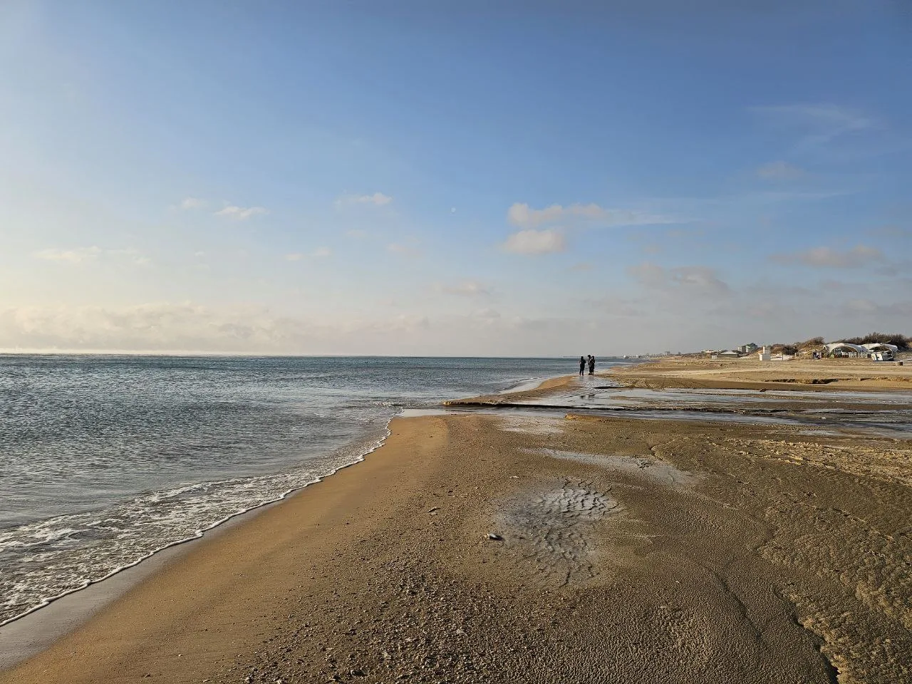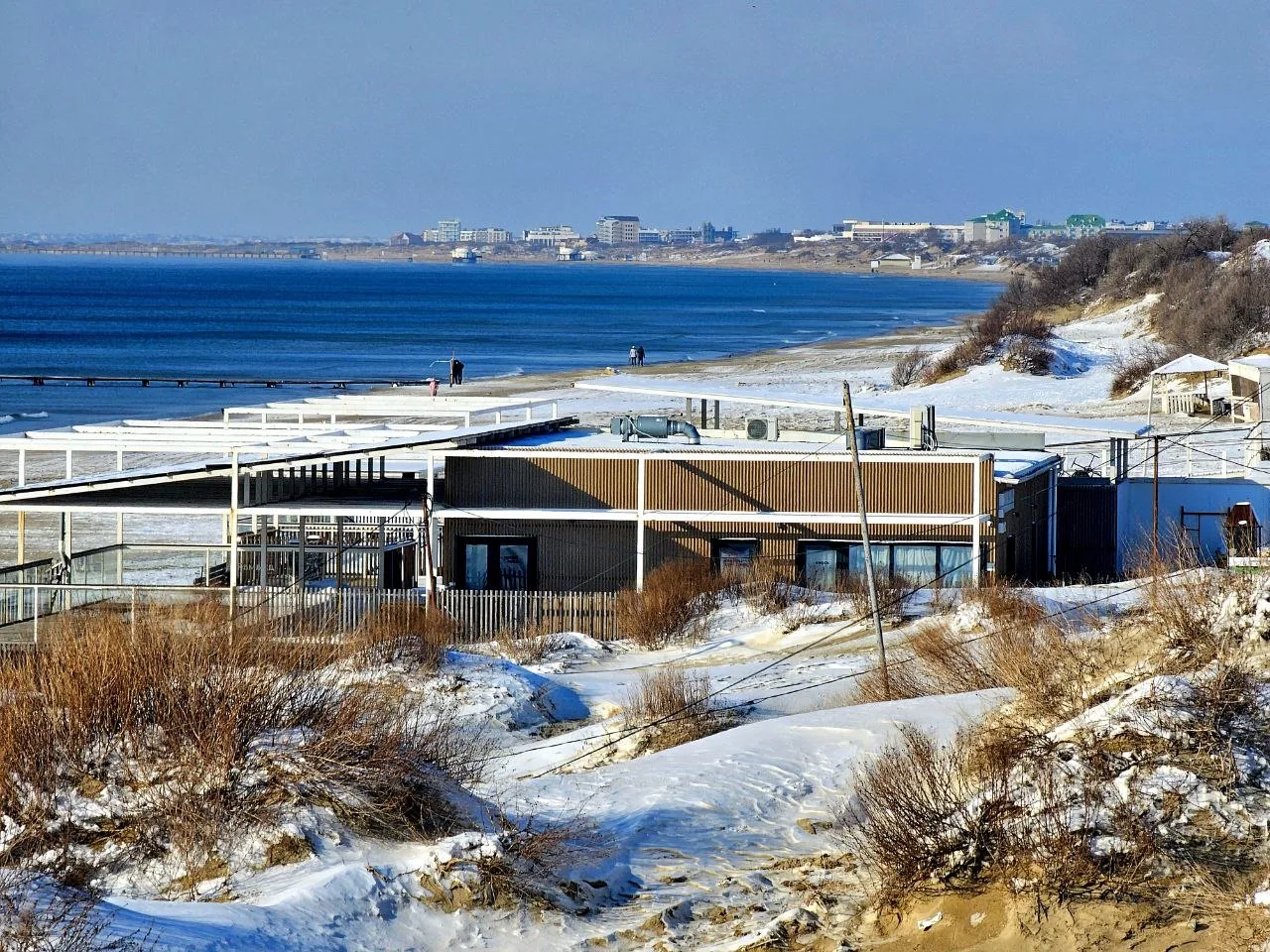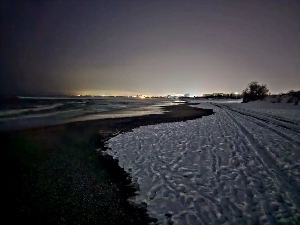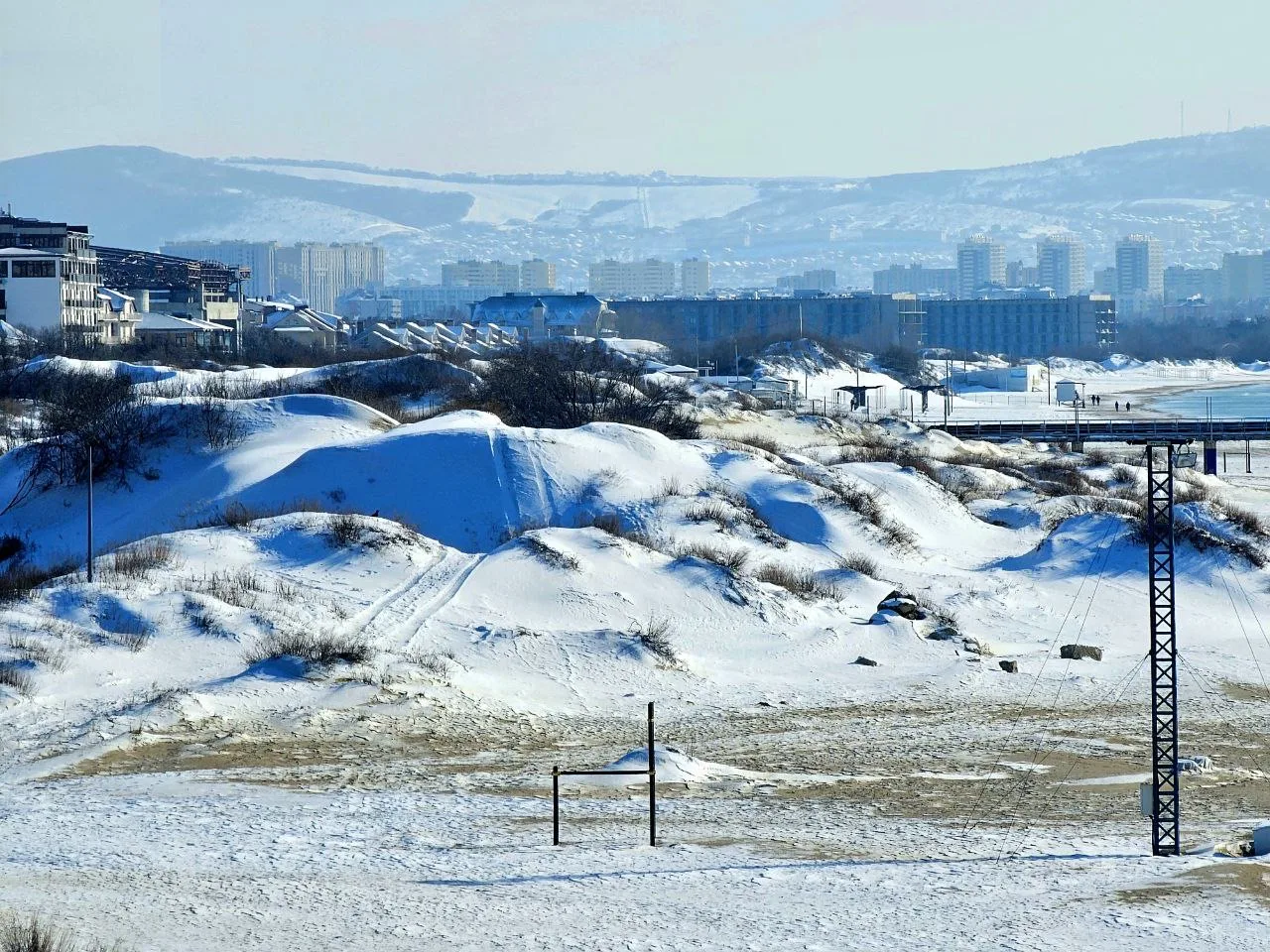 Вид на заснеженные пляжи #Джемете с дюн на Золотистом проезде, дальше снега гораздо меньше, тут своеобразная линия зимы и весны.