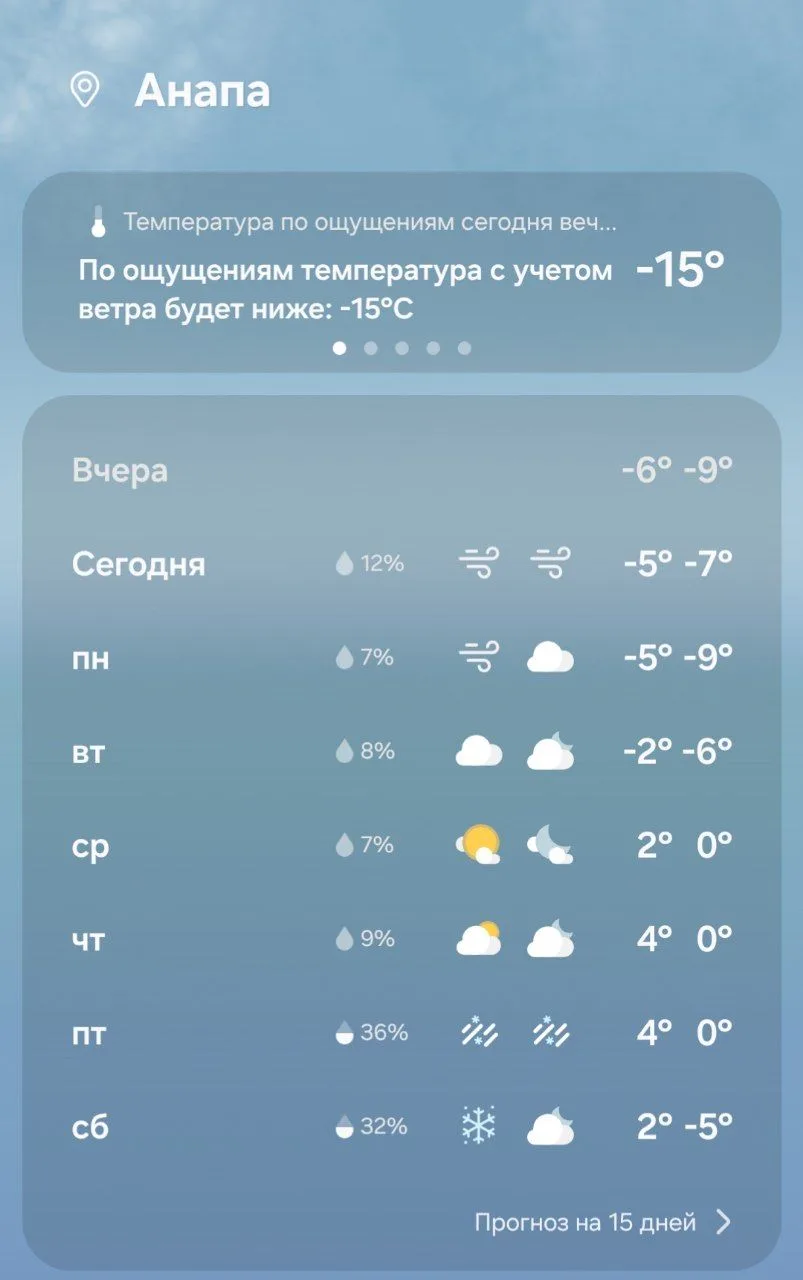 Сегодня как у классика - Мороз и солнце, день чудесный. Но реалии Анапы добавляют сильный холодный ветер с берега, это снижает ощущаемую температуру.