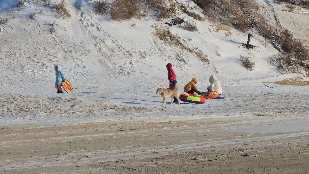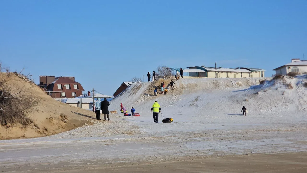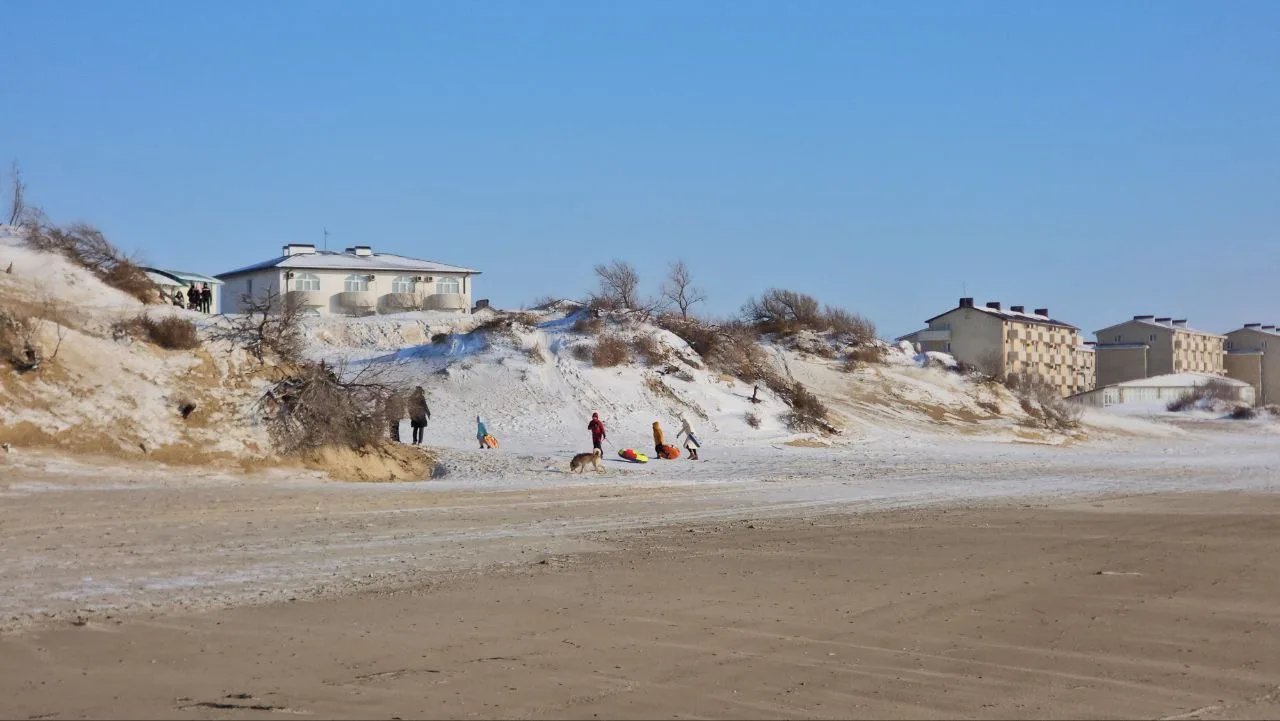 В #Джемете на ул Морская на дюнах настоящий праздник Зимы, люди наслаждаются возможностью покататься с дюн. Я их понимаю, ради этого ездил в Сочи, а теперь тут все наше родное.