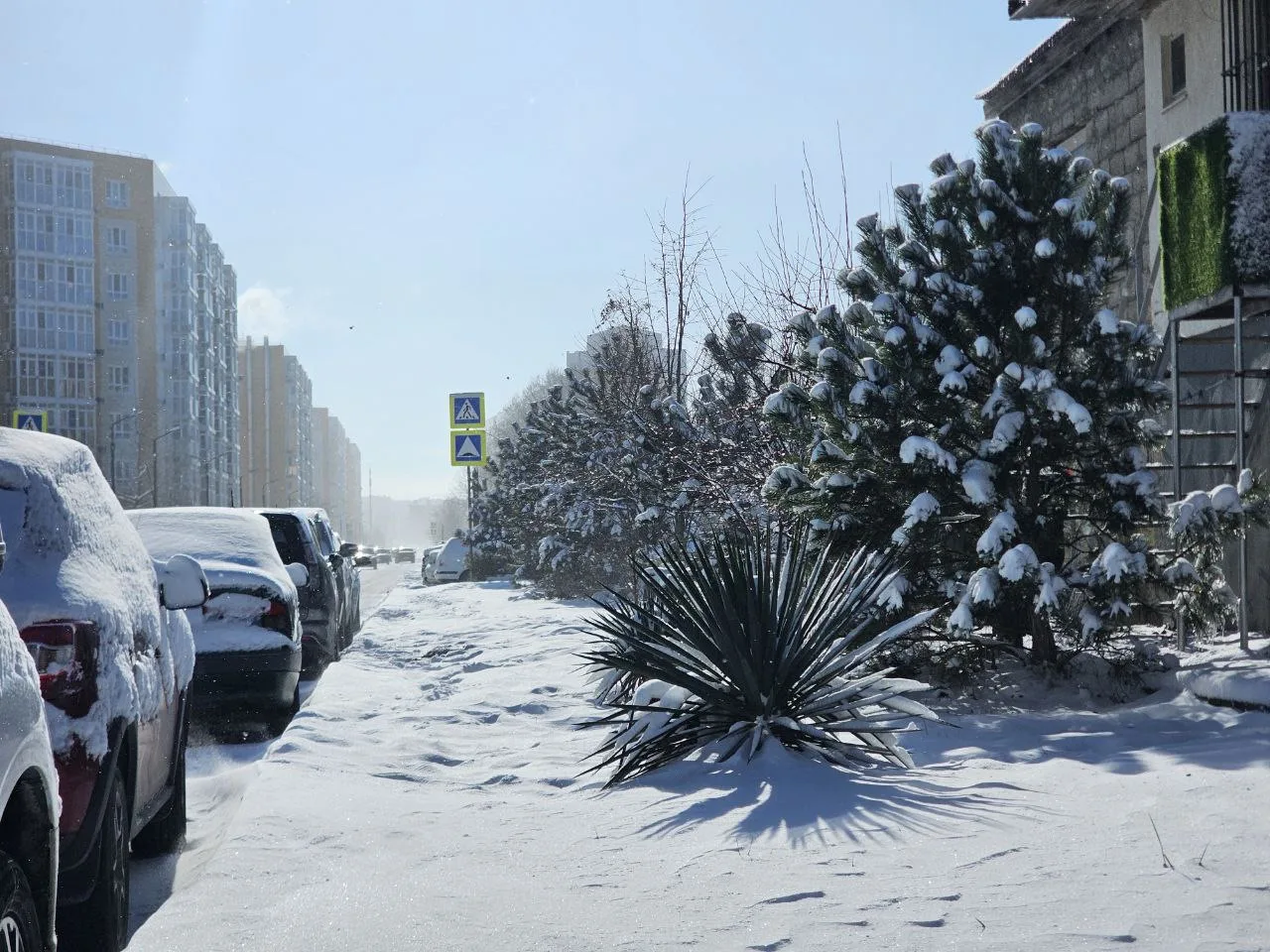 Судя по машинам в снегу, сегодня многие остались дома.