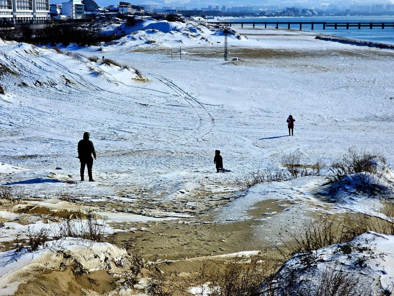 Подъем на снежную дюну на пляже в #Джемете