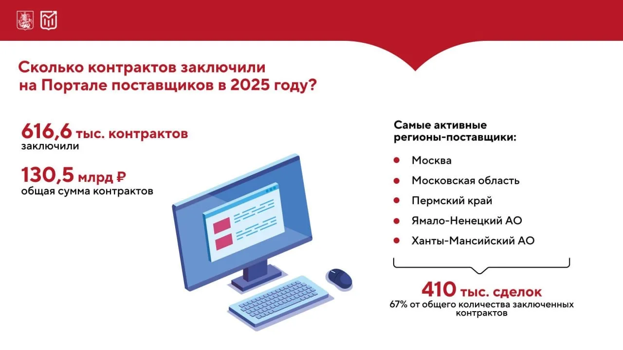 Более половины из них Москва заключила на Портале поставщиков — платформе для проведения закупок малого объема.