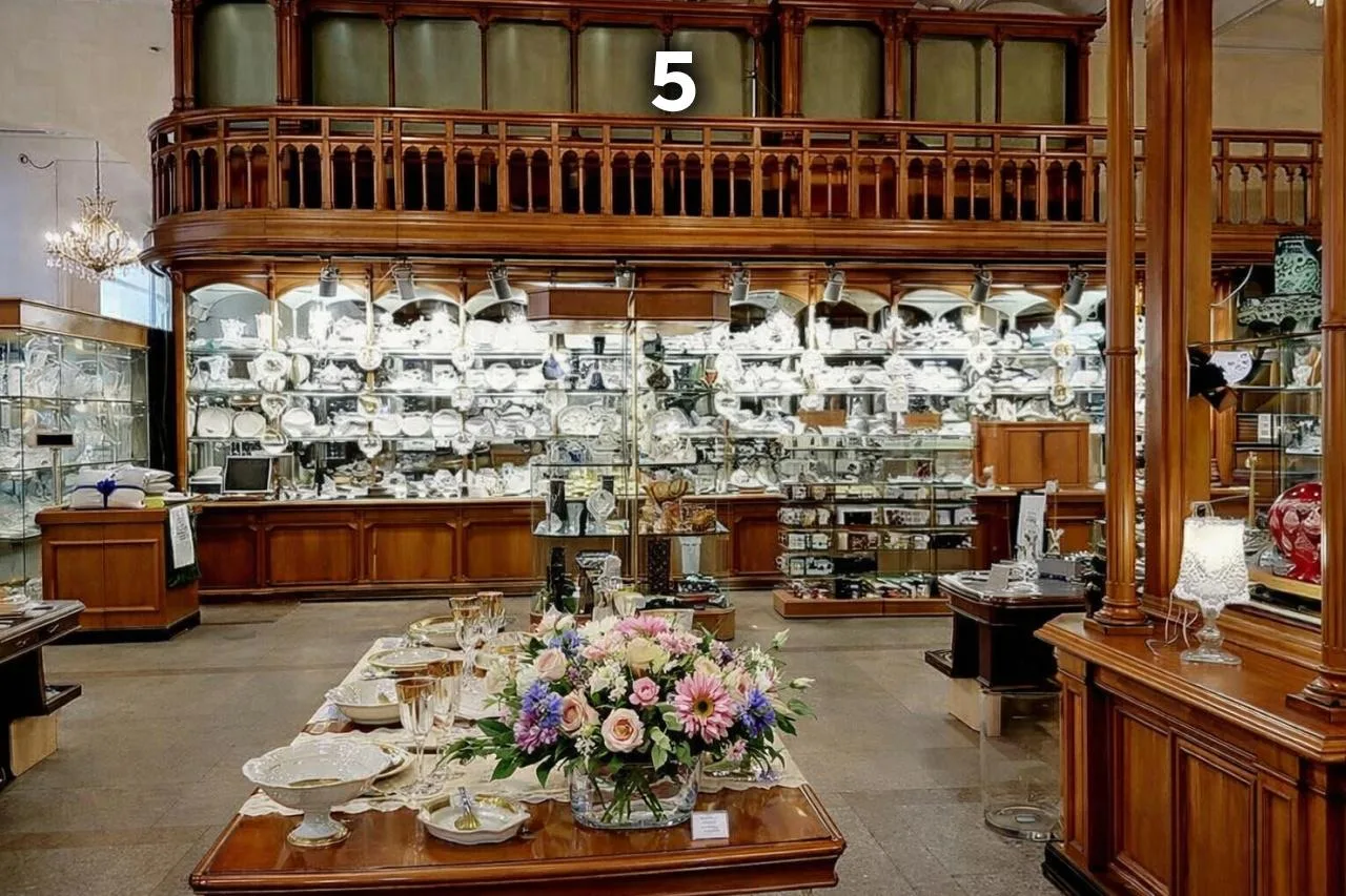 5️⃣После революции 1917 года предназначение здания несколько раз менялось, однако исторические витрины и прилавки сохранились. Сегодня на первом этаже, как и при Кузнецове, торгуют фарфором и фаянсом, а Торговый дом привлекает не только любителей фарфора, но и ценителей истории предпринимательства и культурного наследия.
