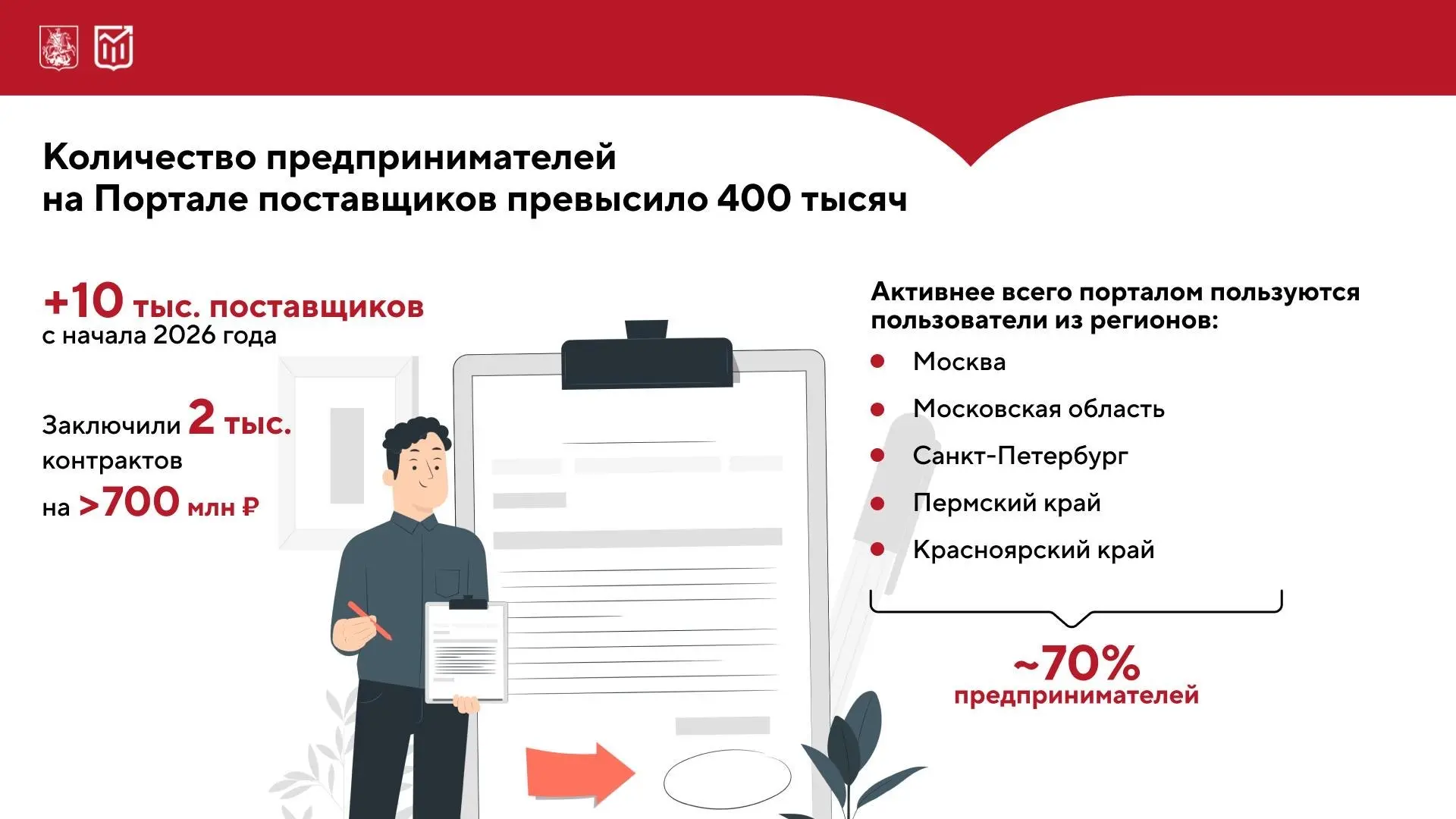📈 Портал поставщиков: число зарегистрированных предпринимателей перешагнуло отметку 400 тысяч