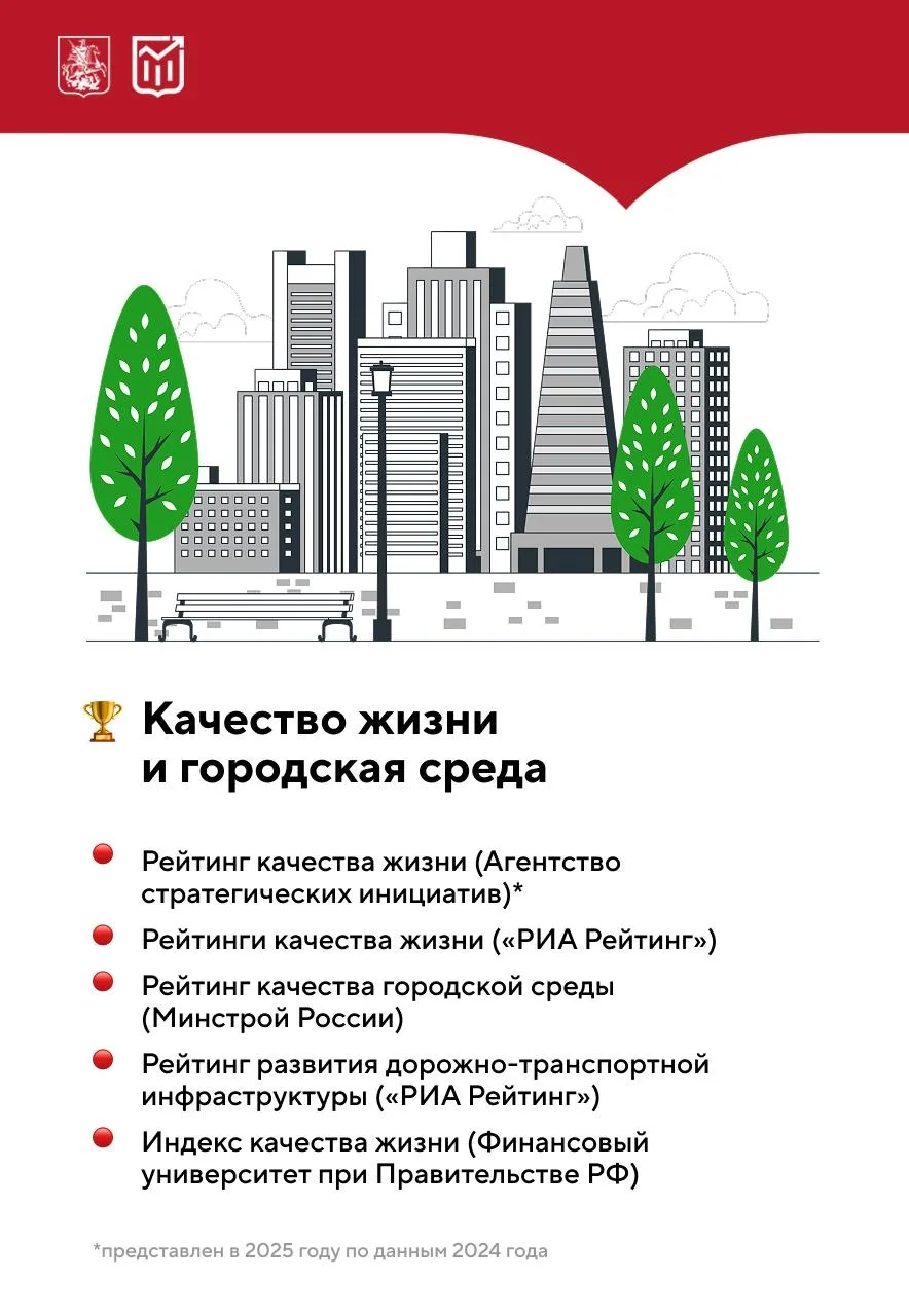 🏆 Москва в пятый раз подряд стала лидером среди российских регионов по качеству жизни