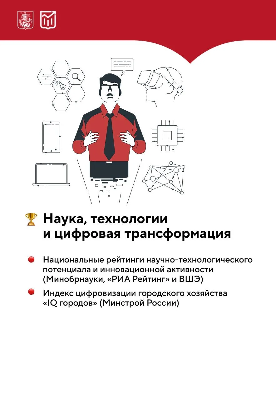 ➡️ Всего рейтинг рассчитывался по 149 показателям, объединенным в 12 направлений. В рамках 10 направлений оценки Москва входит в топ-10 более чем по половине оцениваемых показателей.