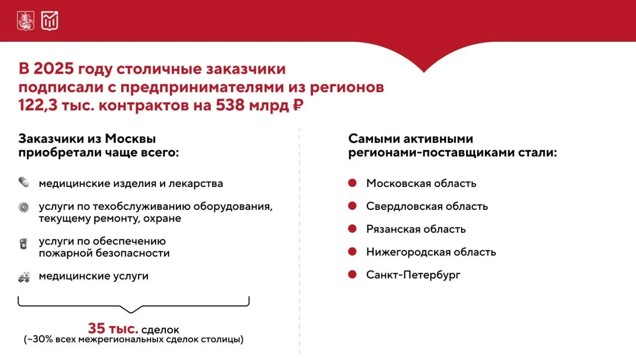 📈 +40%: Общий объем контрактов Москвы с регионами в 2025 году достиг 538 млрд ₽