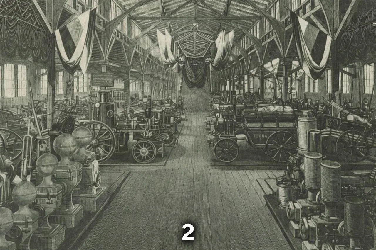 2️⃣ Завод пожарной техники Густава Листа берет свое начало с небольшой мастерской, открывшейся в 1863 году на Петровке. Уже в первый год работы выпущенные здесь пожарные трубы получили золотую медаль Русского технического общества. Позже предприятие разрослось до целого квартала на Софийской набережной, выпуская насосы, огнетушители и даже первые пожарные автомобили. К 1914 году завод имел почти 60 высших наград со всего мира.