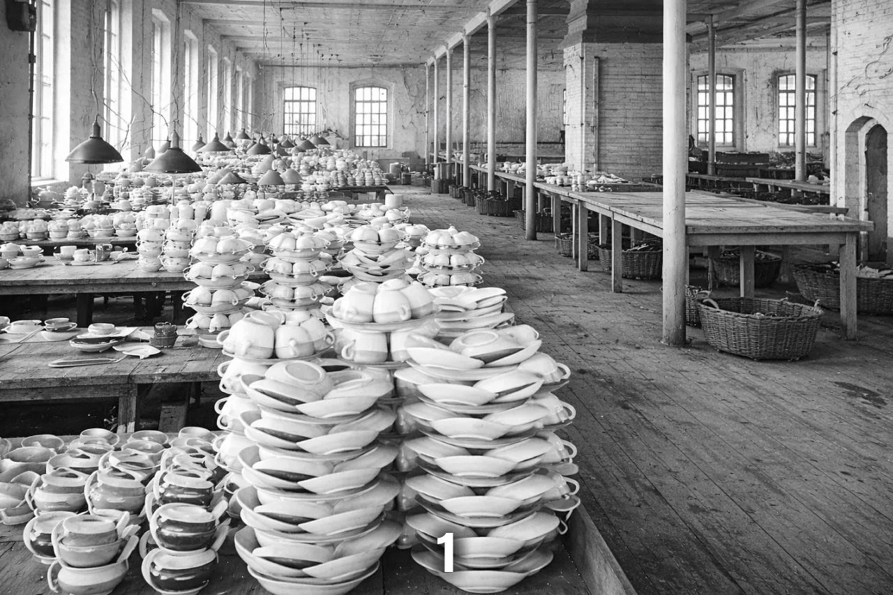 1️⃣Датой рождения кузнецовского фарфора можно считать 1812 год, когда Яков Кузнецов основал первый небольшой завод в Гжели. Уже к началу XX века семейная империя объединяла 18 заводов, на которых большое внимание уделялось внедрению разных технических новшеств. Так, Кузнецовы первыми в стране стали хранить глину в подвалах для повышения ее пластичности, автоматизировали формовку продукции и нанесение декора.