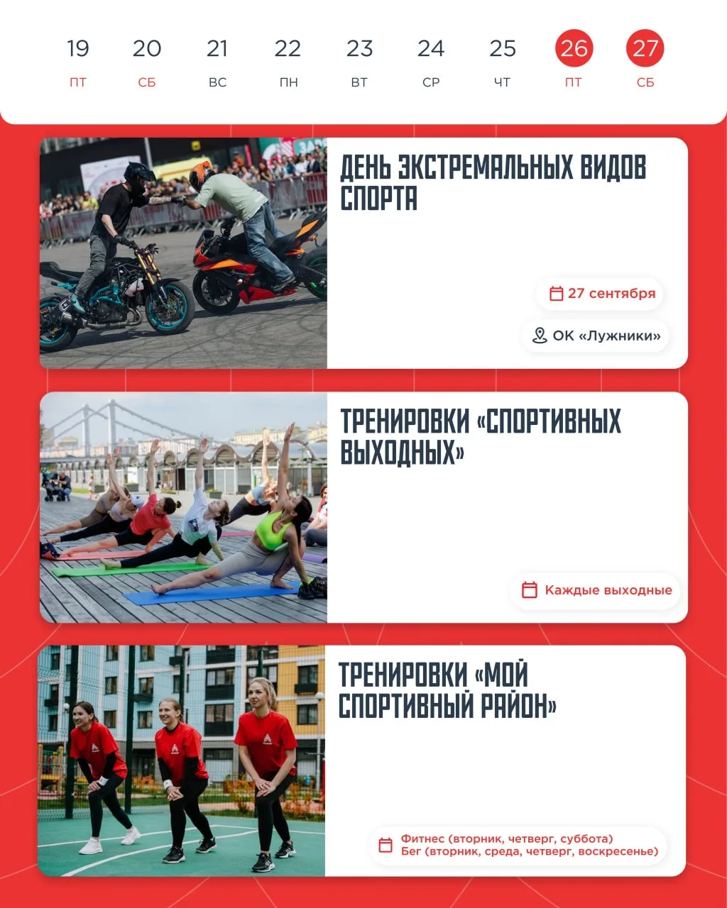 🕔 В эту субботу, 20 сентября, столица превратится в огромную спортивную арену — 11 локаций по 24 видам спорта станут местом притяжения любителей активного образа жизни.