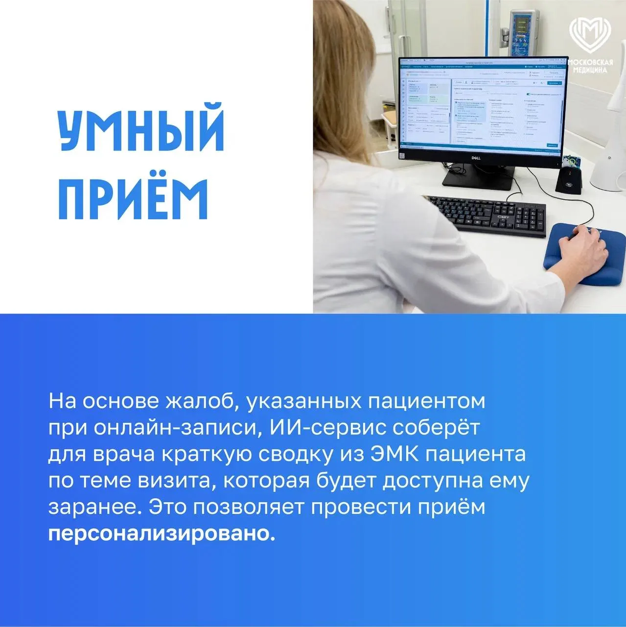 Как работают цифровые решения столичной медицины: единая цифровая система, искусственный интеллект — умный приём, ИИ-помощник врача, цифровая реанимация, система МосМедИИ.