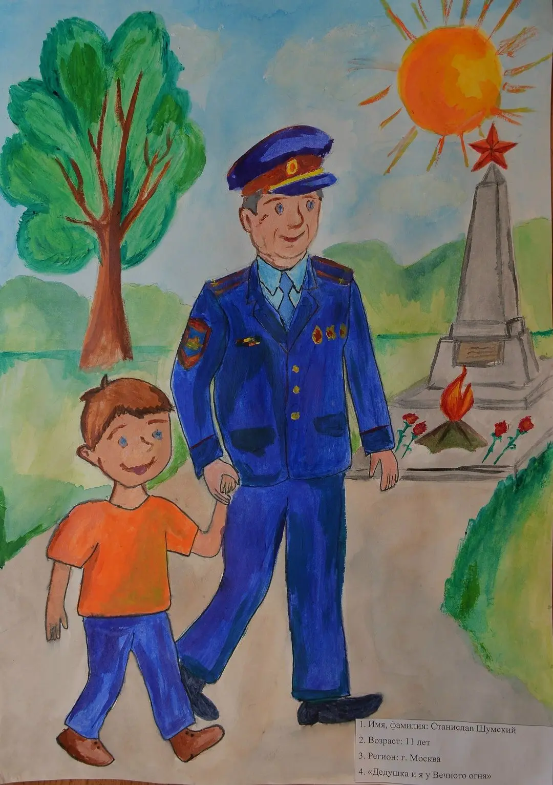 В этом году выделена отдельная номинация, которая посвящена объявленному Президентом Российской Федерации Году защитника Отечества. В ней победил рисунок 11-летнего Станислава Шумского (УВД по ЮАО) под названием «Дедушка и я у Вечного огня».