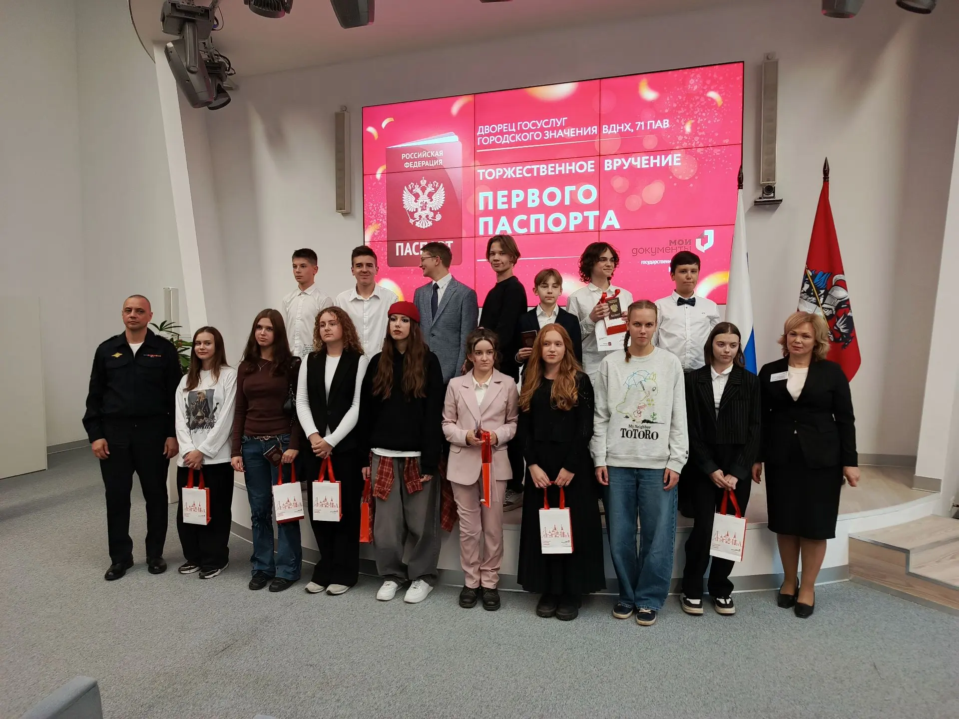 Во Дворце государственных услуг «Мои Документы» на ВДНХ 14-летним жителям округа вручили их главный документ. Вместе с паспортами они получили напутствие от полицейских.